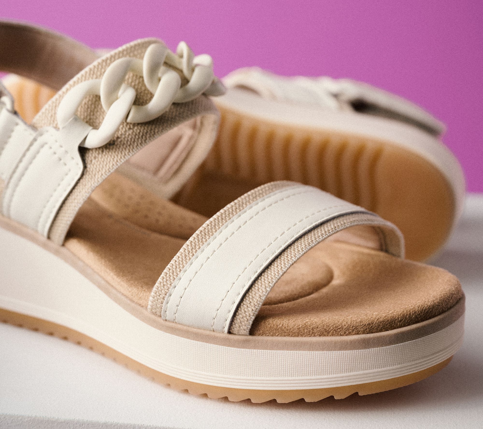 • Approximate measurements: Wedge heel 2.375"H; Sole 1"H
