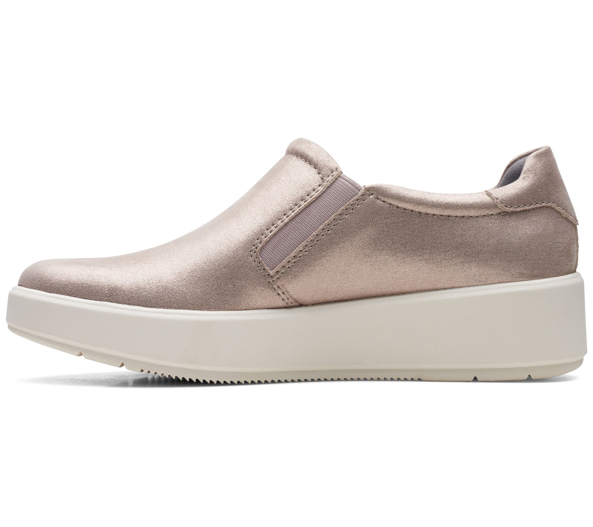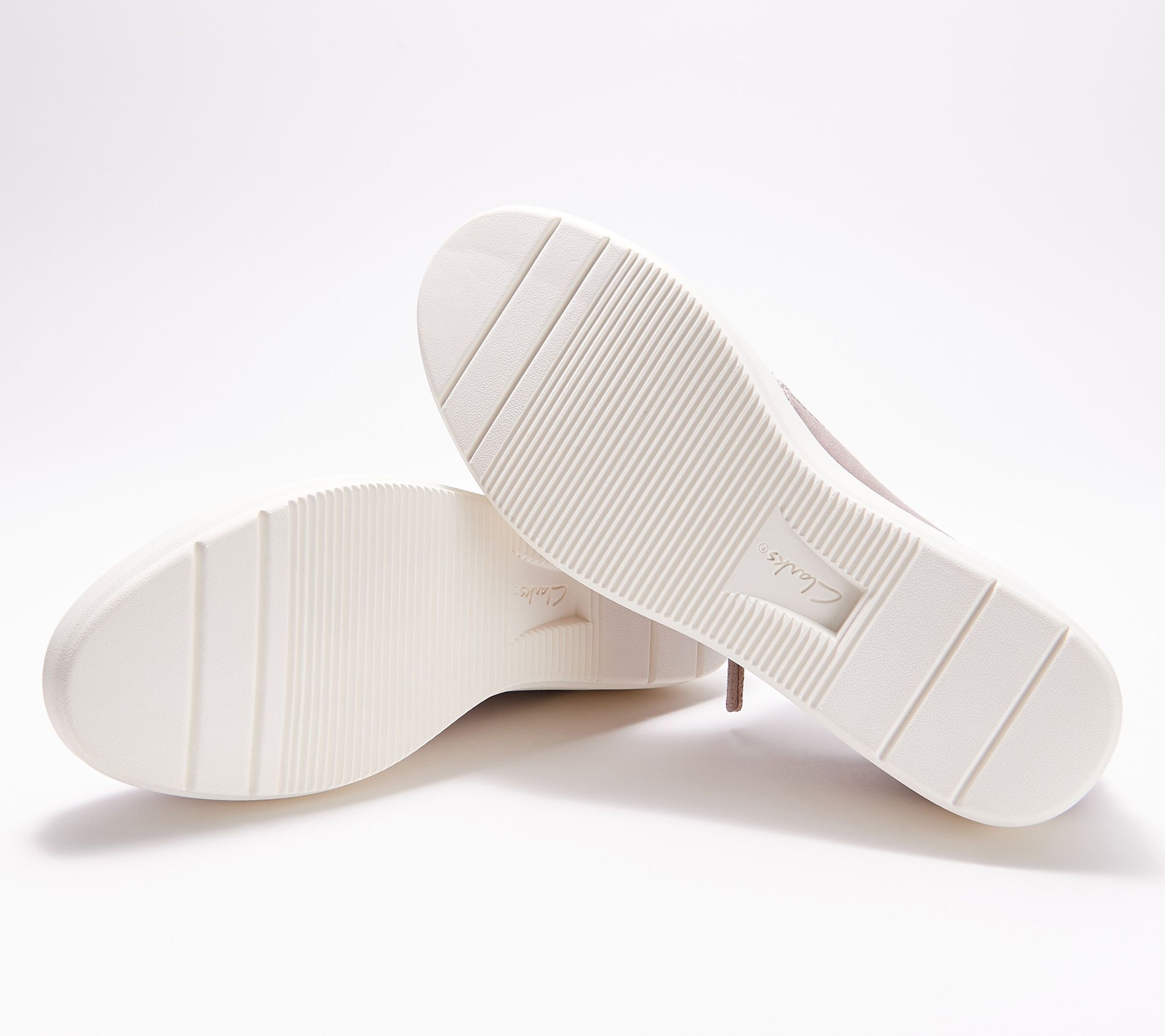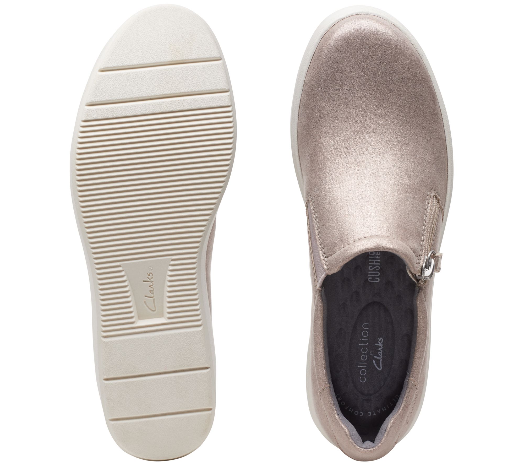 A little rhythm. A lot of sole. Jazz up your stepper collection with these heel-clickin', toe-tappin' sneakers by Clarks. There's something oh-so-smooth about their easy, slip-on style with side goring. And a sleek side zipper makes for additional fit and feel. So tune out all the distracting noise, march to the beat of your own drum, and put some pep in your step every time you wear these sneaks. From Clark's Footwear.