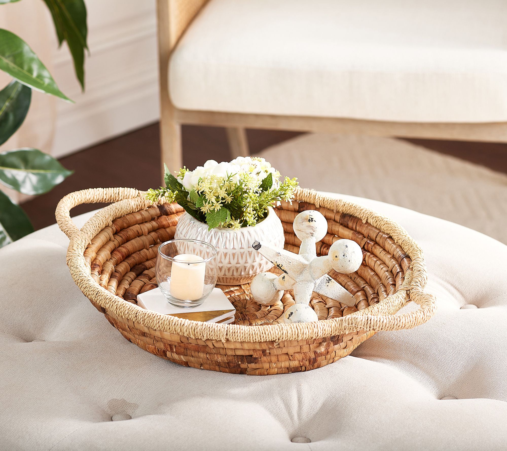 Fill this seagrass tray with your treasured trinkets and display it on a coffee table or console to bring a designer's touch to your space. From Lauren McBride.