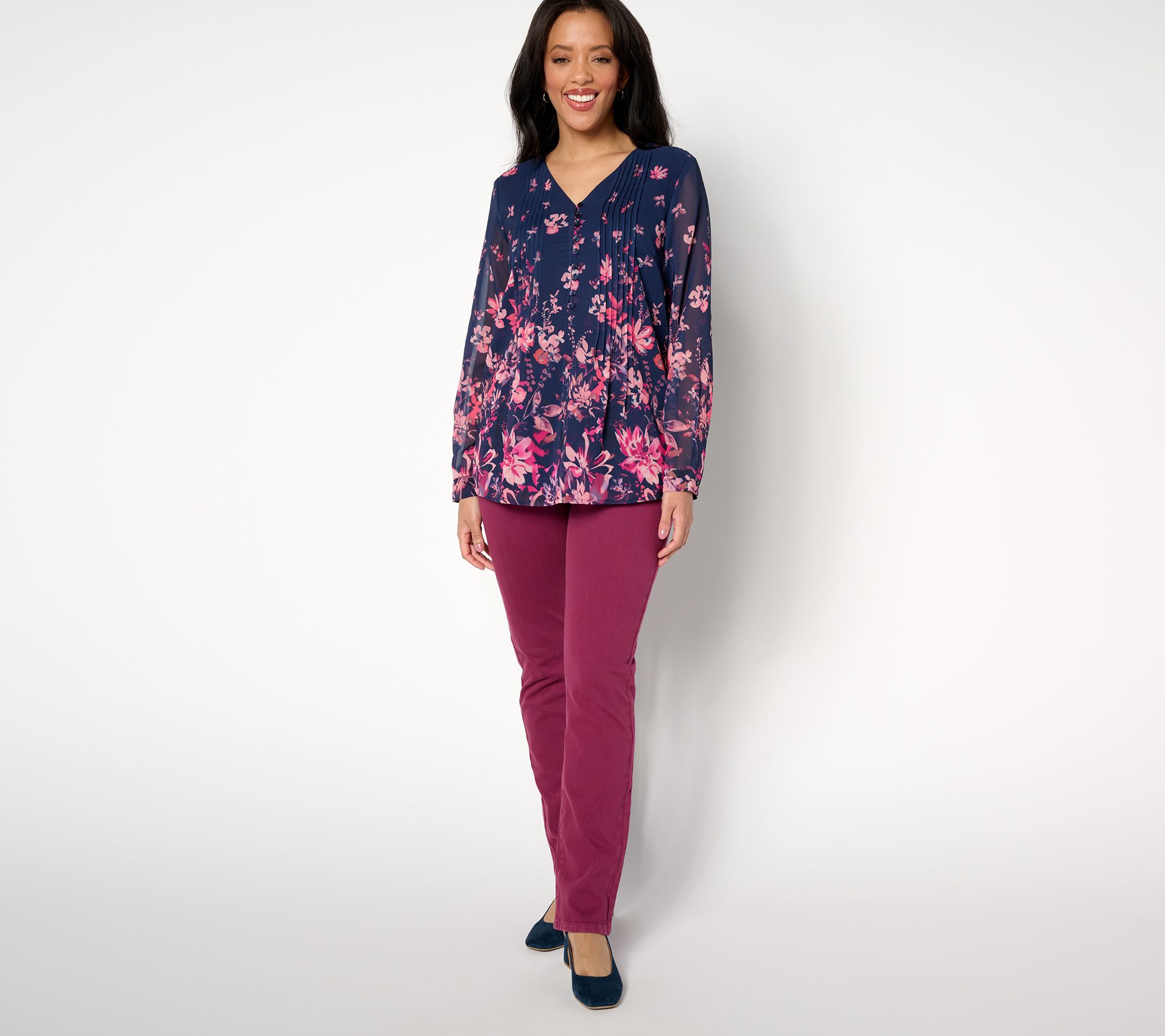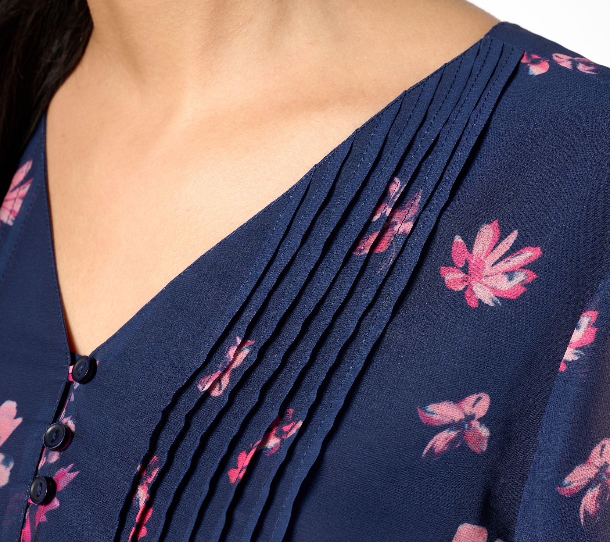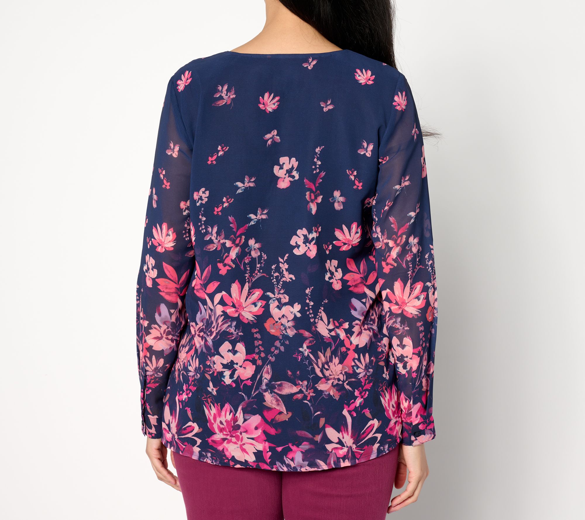 Nothing says spring quite like a pretty floral blouse. This beautiful top is fashioned with a Mandarin collar and a half-button placket. From Coldwater Creek.