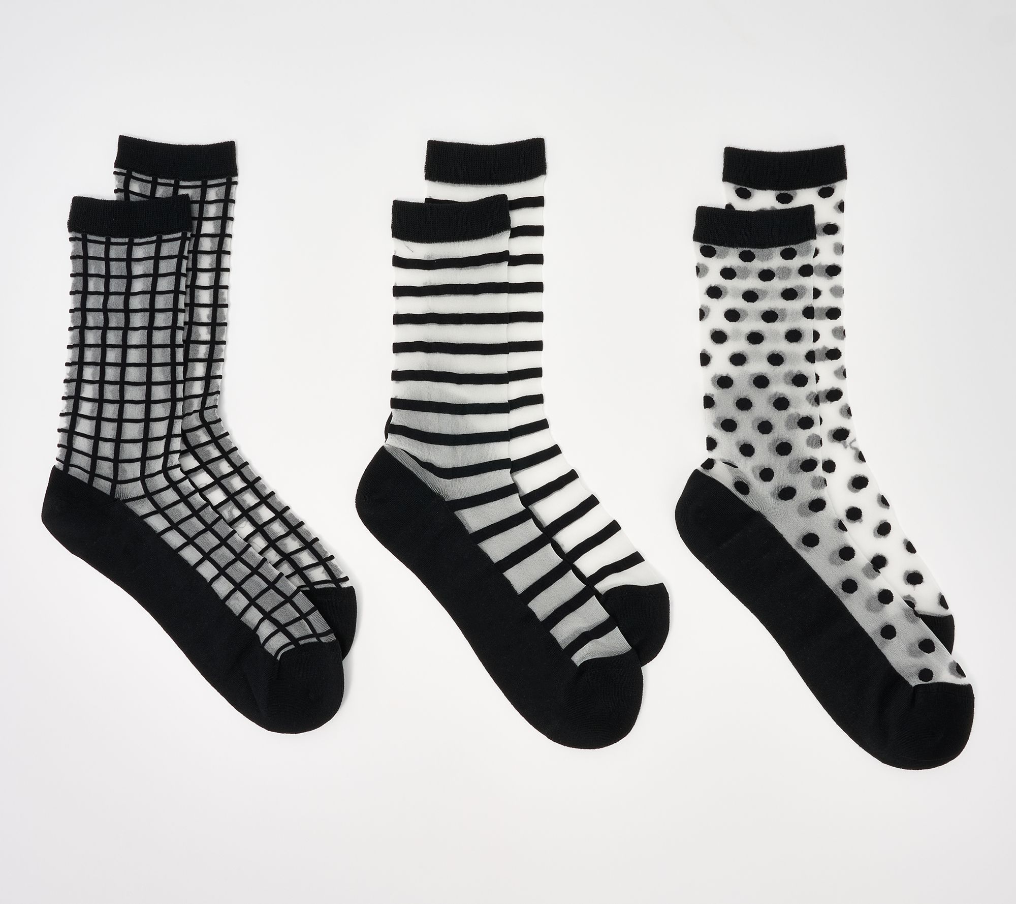 Freshen up those everyday staples with this set of crew-length sheer patterned socks. From Complliments.