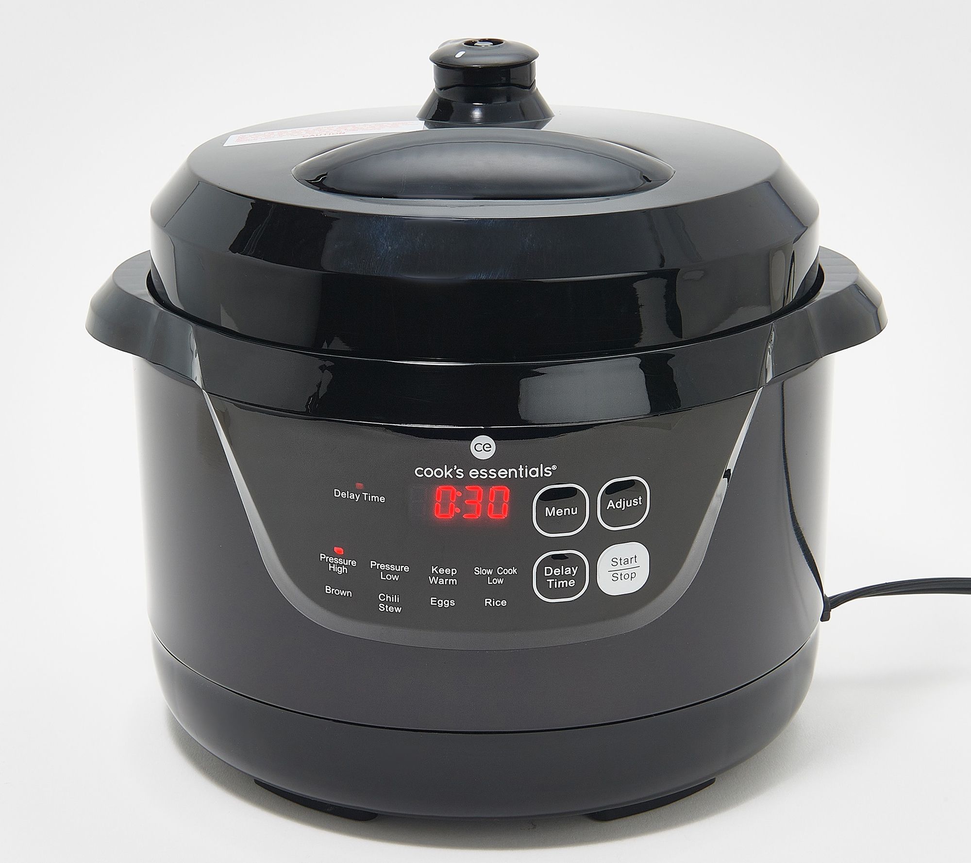 • Seven functions: pressure cook, keep warm, slow cook, brown, chili/stew, eggs, and rice