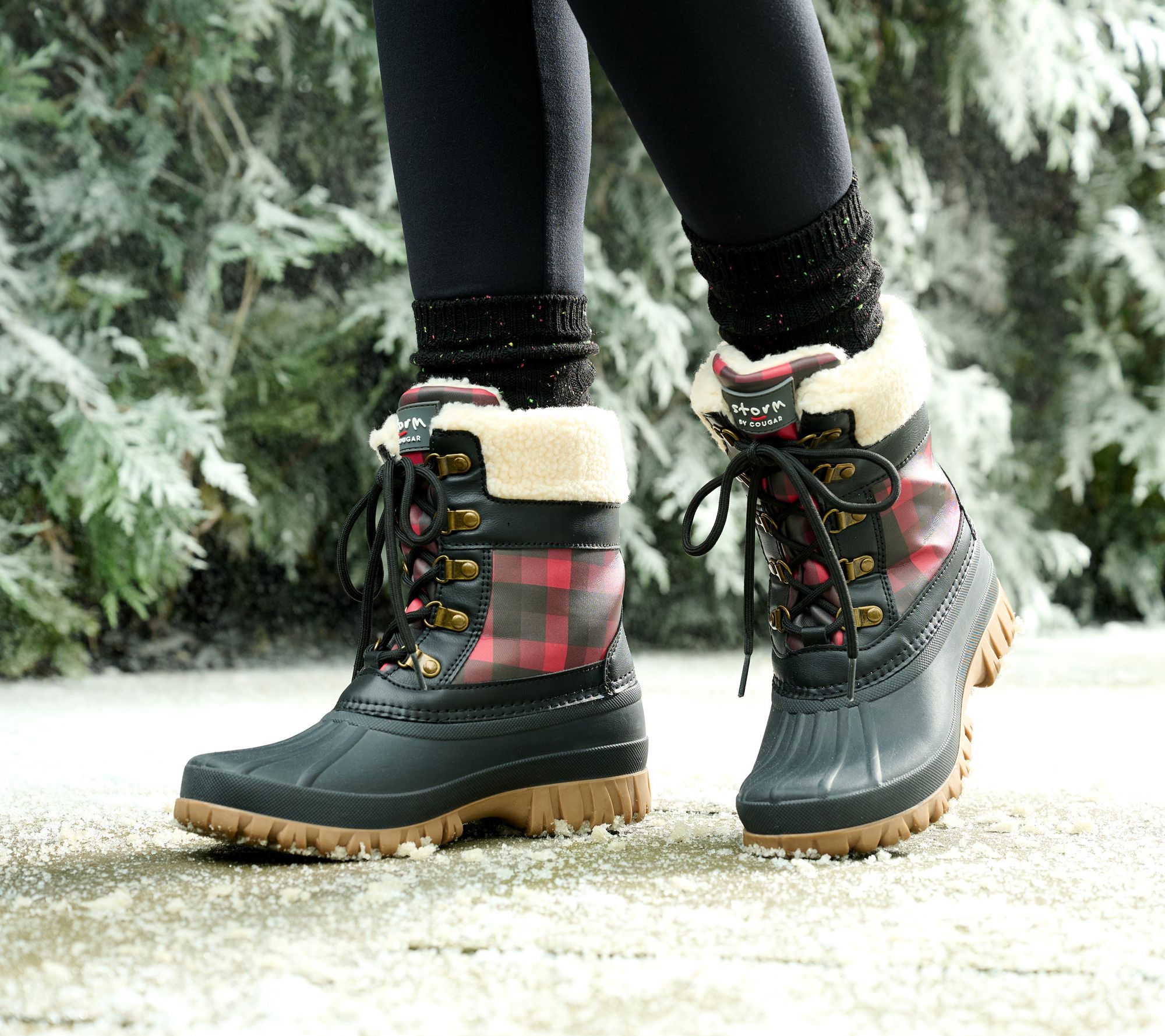 Now, considering the freshly fallen price and the cabin-chic outfits these boots create without even trying, we have our answer to the question posed earlier. Who's ready for a snow day? It's Y - O - U! From Cougar.