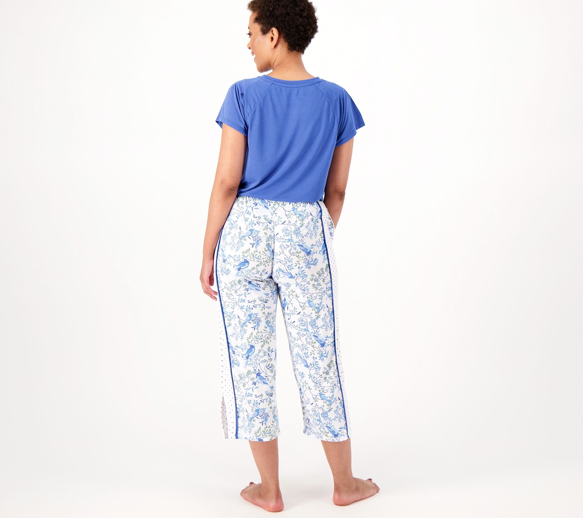 "As Is" Cuddl Duds Blue Skies Flutter Sleeve Top & Crop Pant Pajama Set