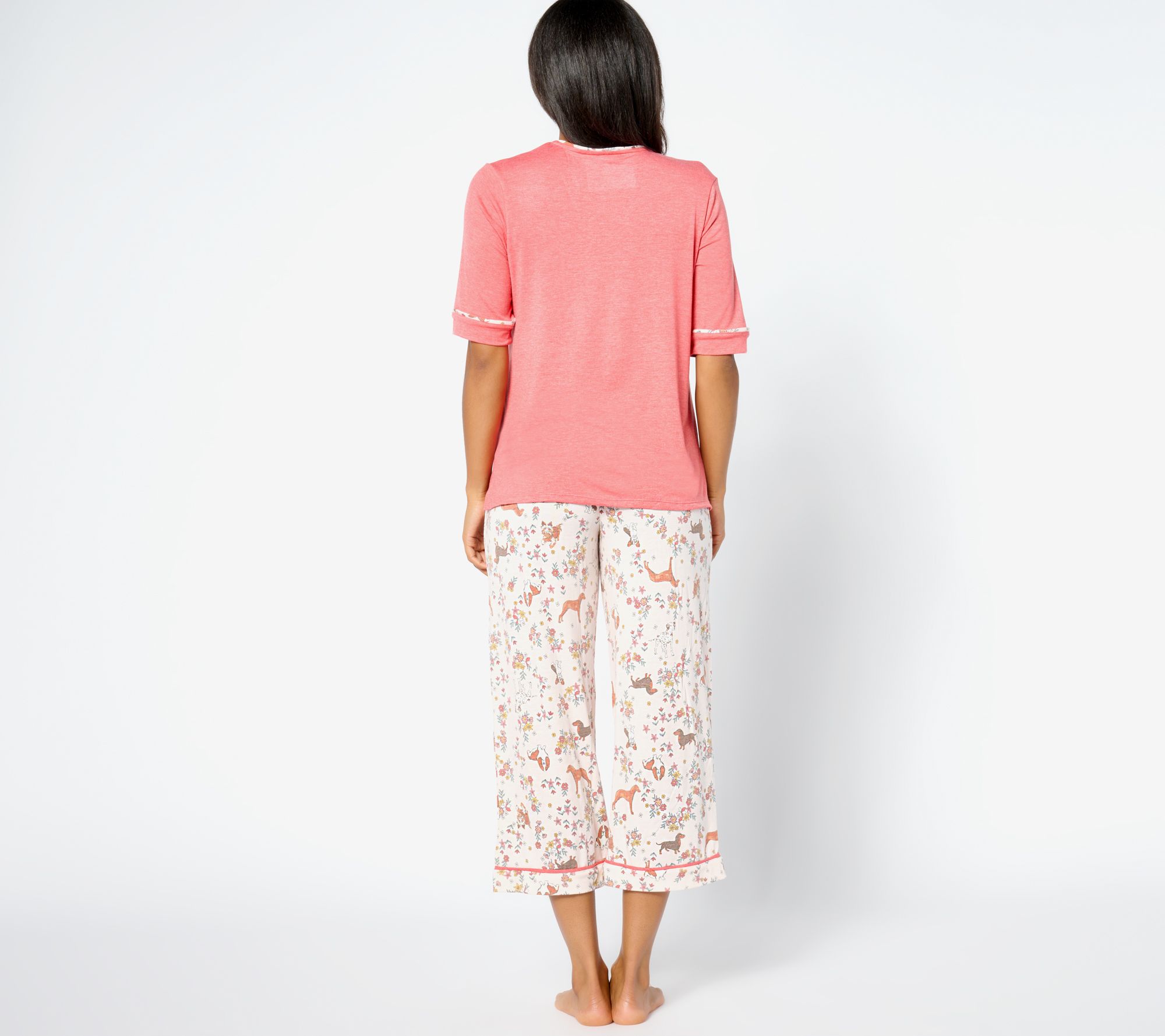 "As Is" Cuddl Duds Classic Jersey Button Front Top & Cropped PJ Set