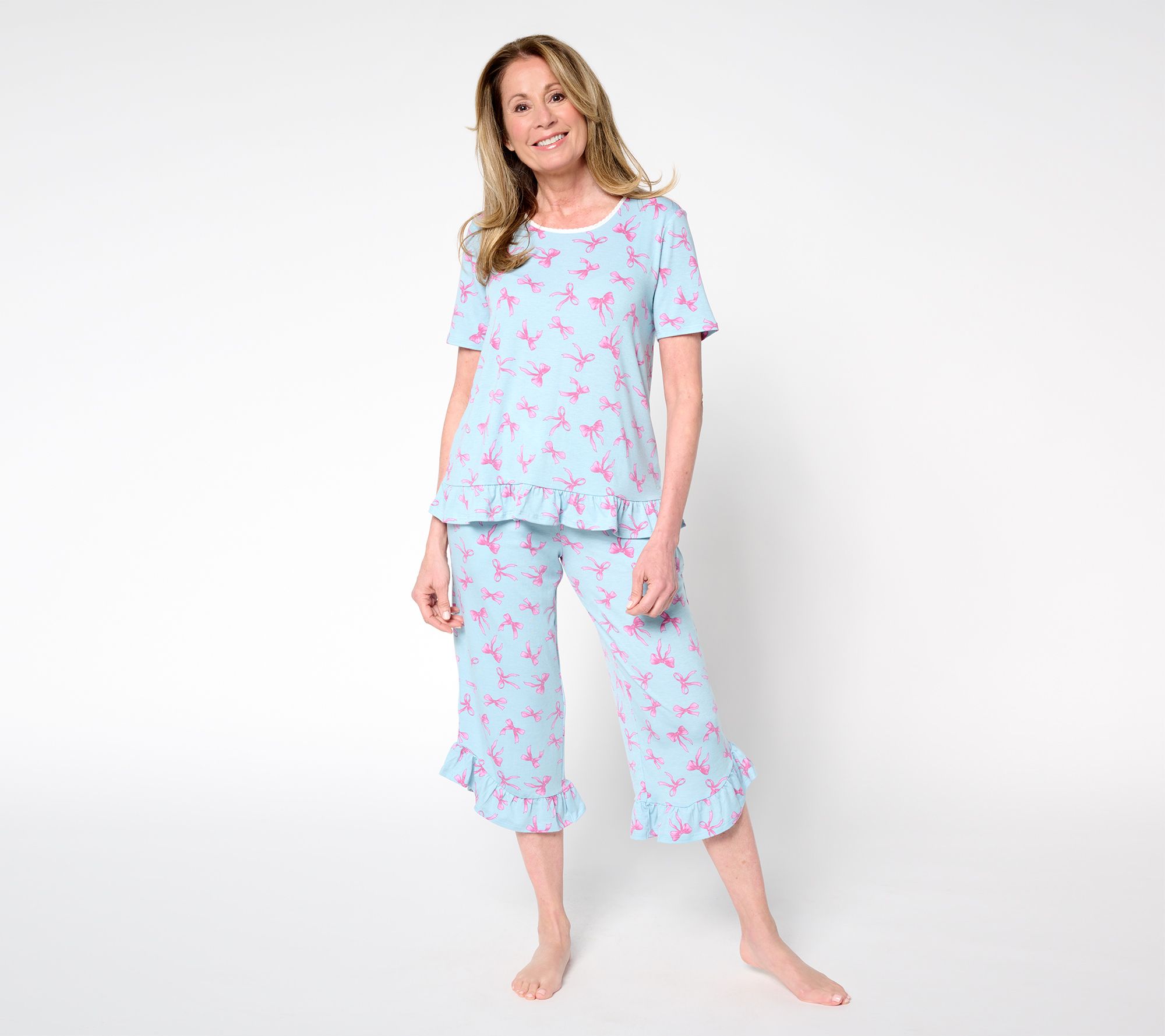 A charming choice for lounging around or a good night's sleep, this Cuddl Duds classic jersey ruffle capri pajama set offers the perfect blend of comfort and style. From Cuddl Duds.