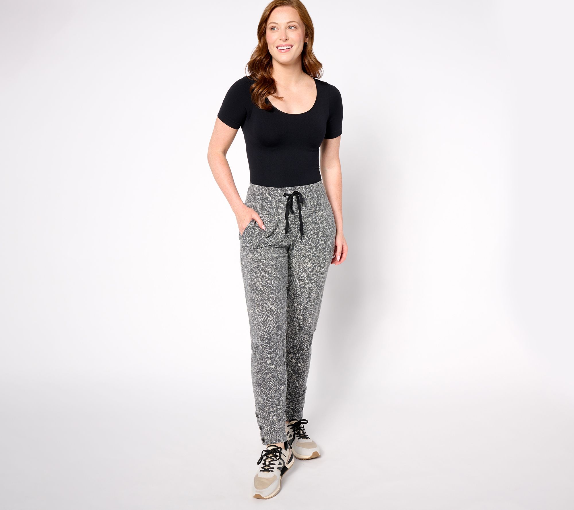 "As Is" Cuddl Duds Comfortwear Petite Button Hem Joggers