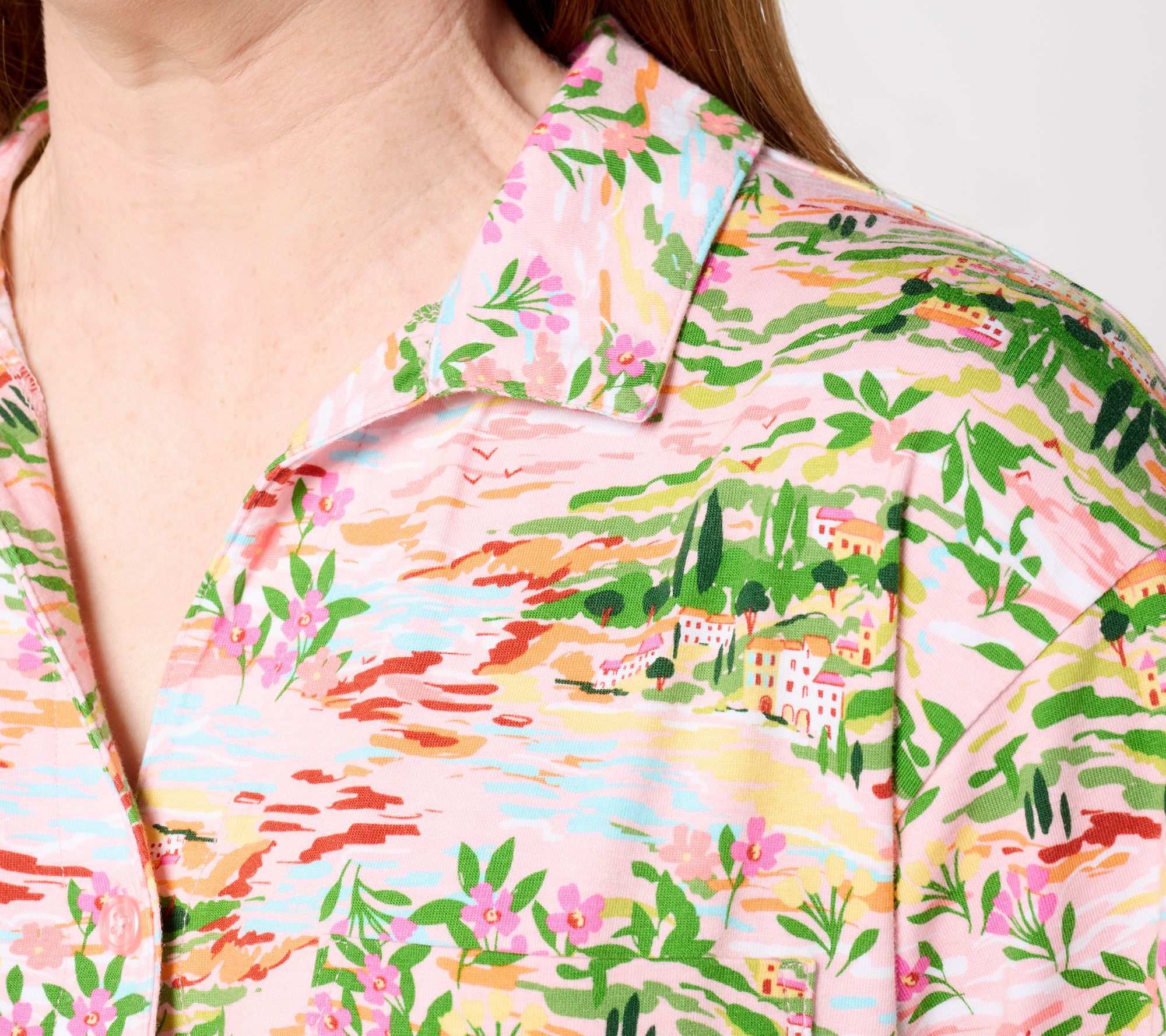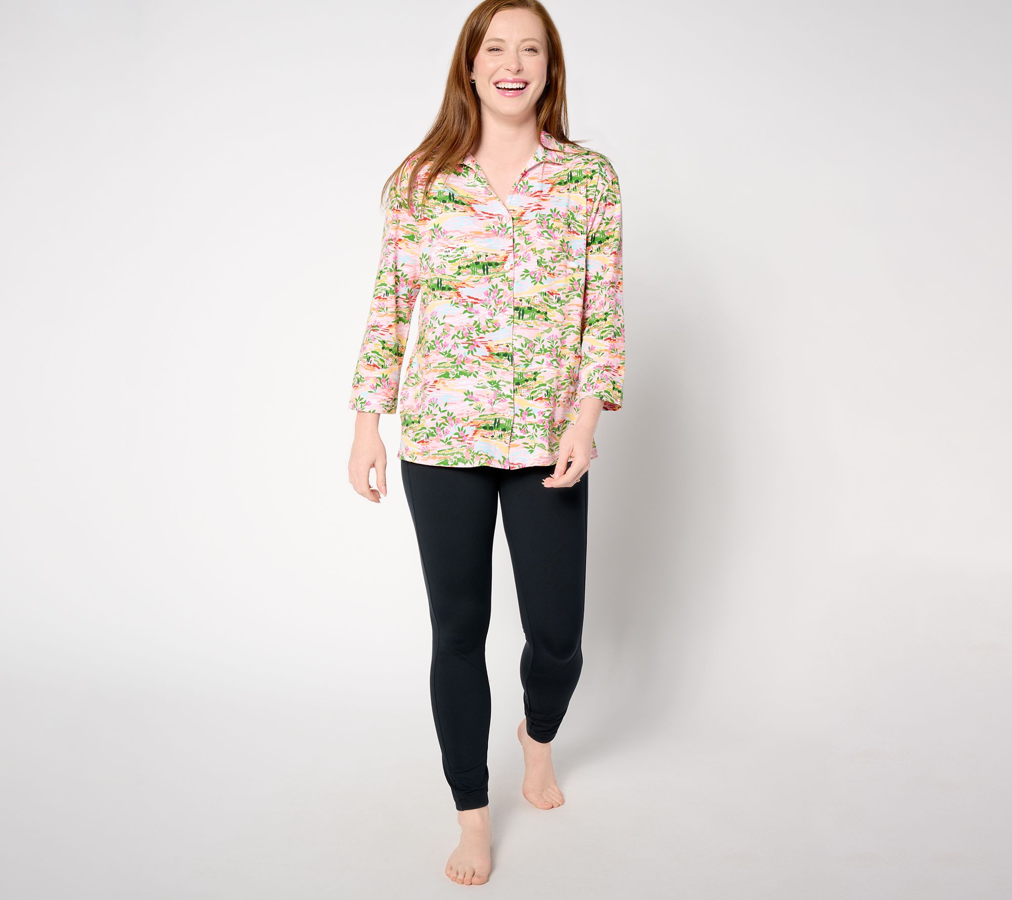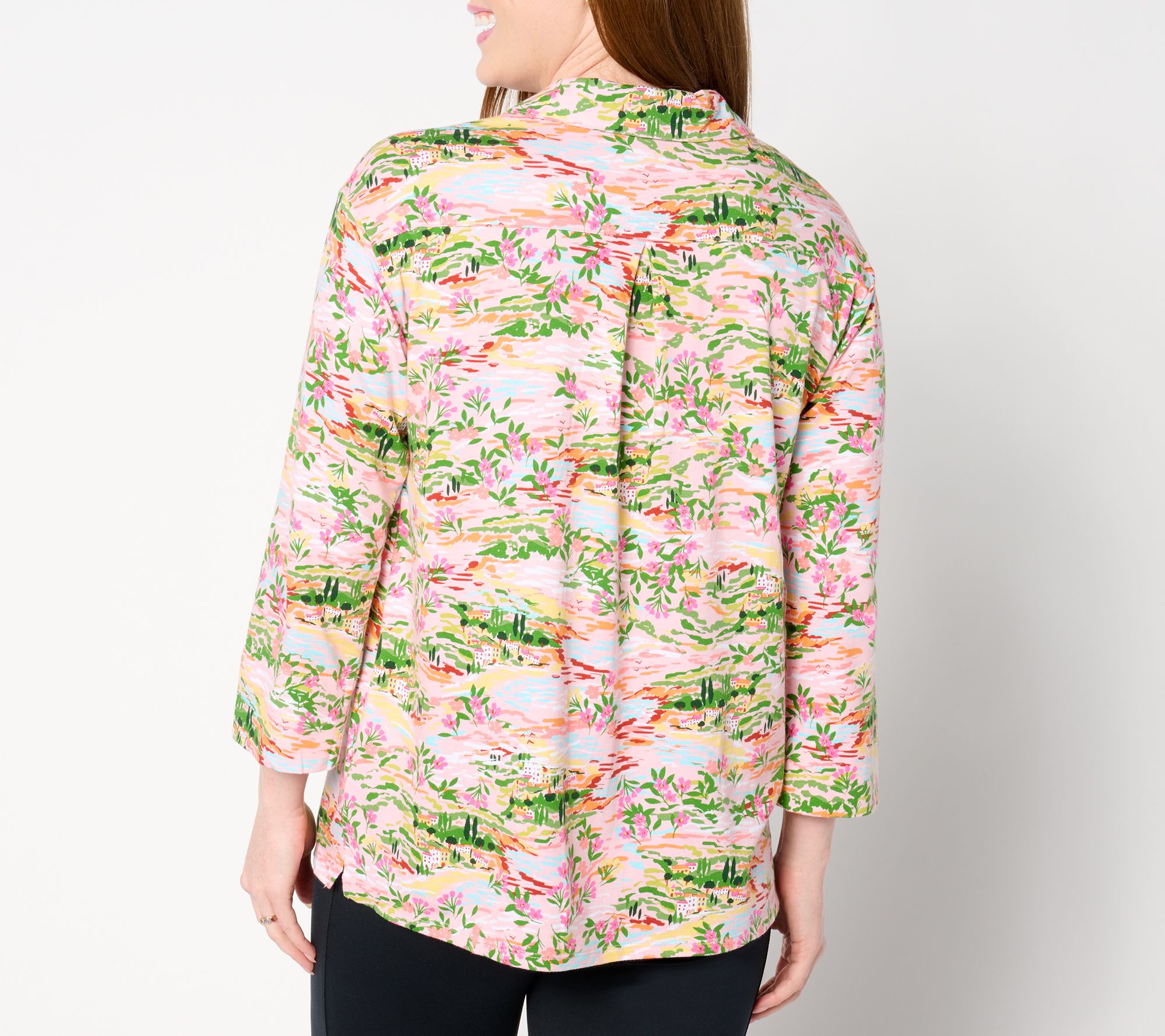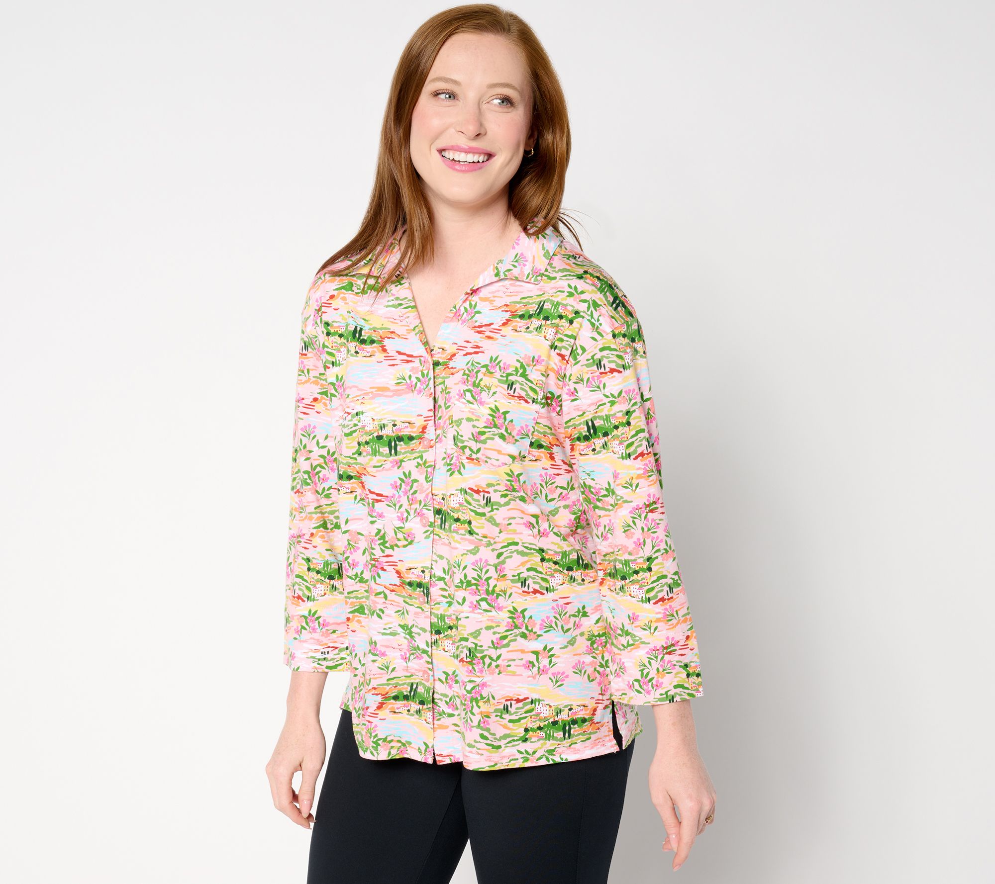 "As Is" Cuddl Duds Cotton Core Notch Collar Vacation Button Up
