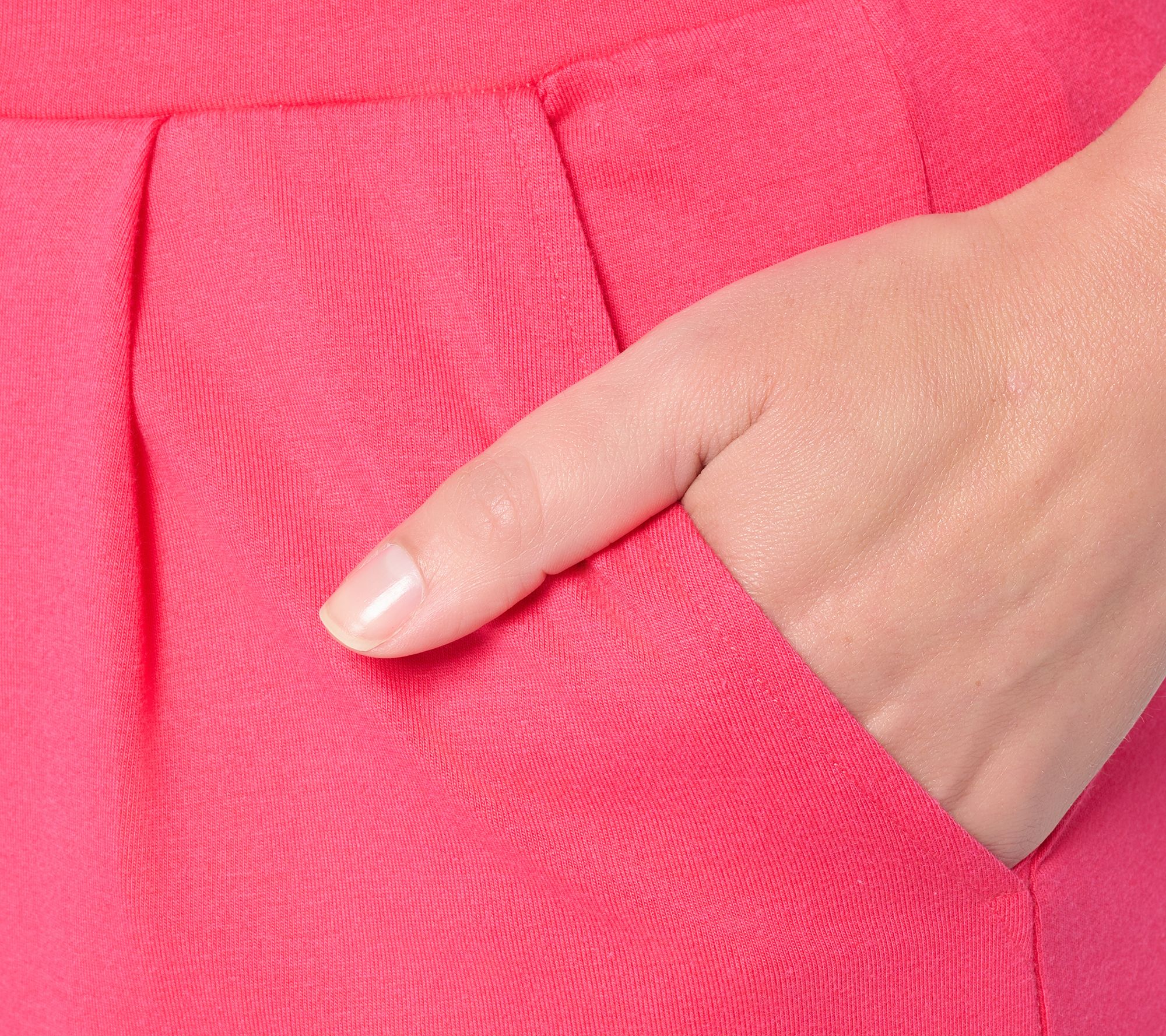 • Features: pull-on style, elastic waistband, pleat detail at front legs, slash pockets