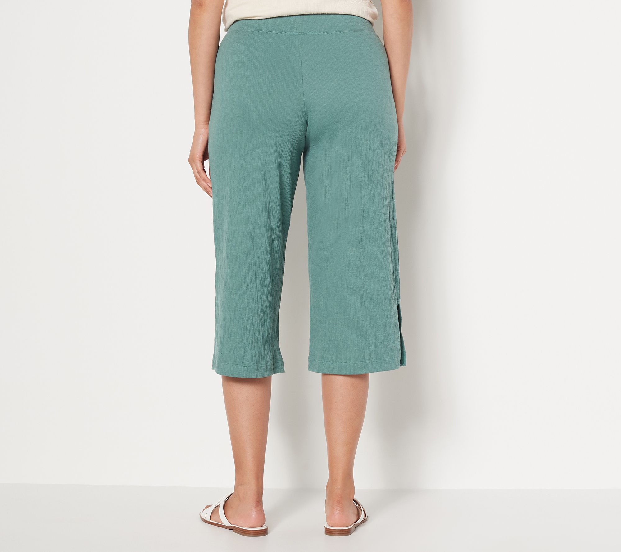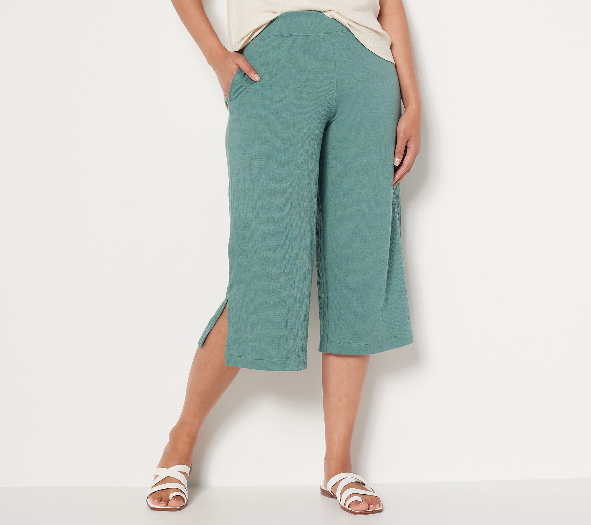 "As Is" Cuddl Duds Crinkle Jersey Cropped Pants with Side Slits