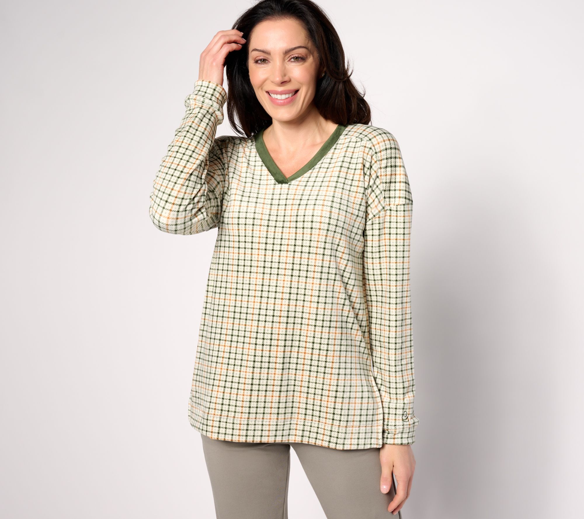 "As Is" Cuddl Duds Double Plush Velour V Neck Tunic