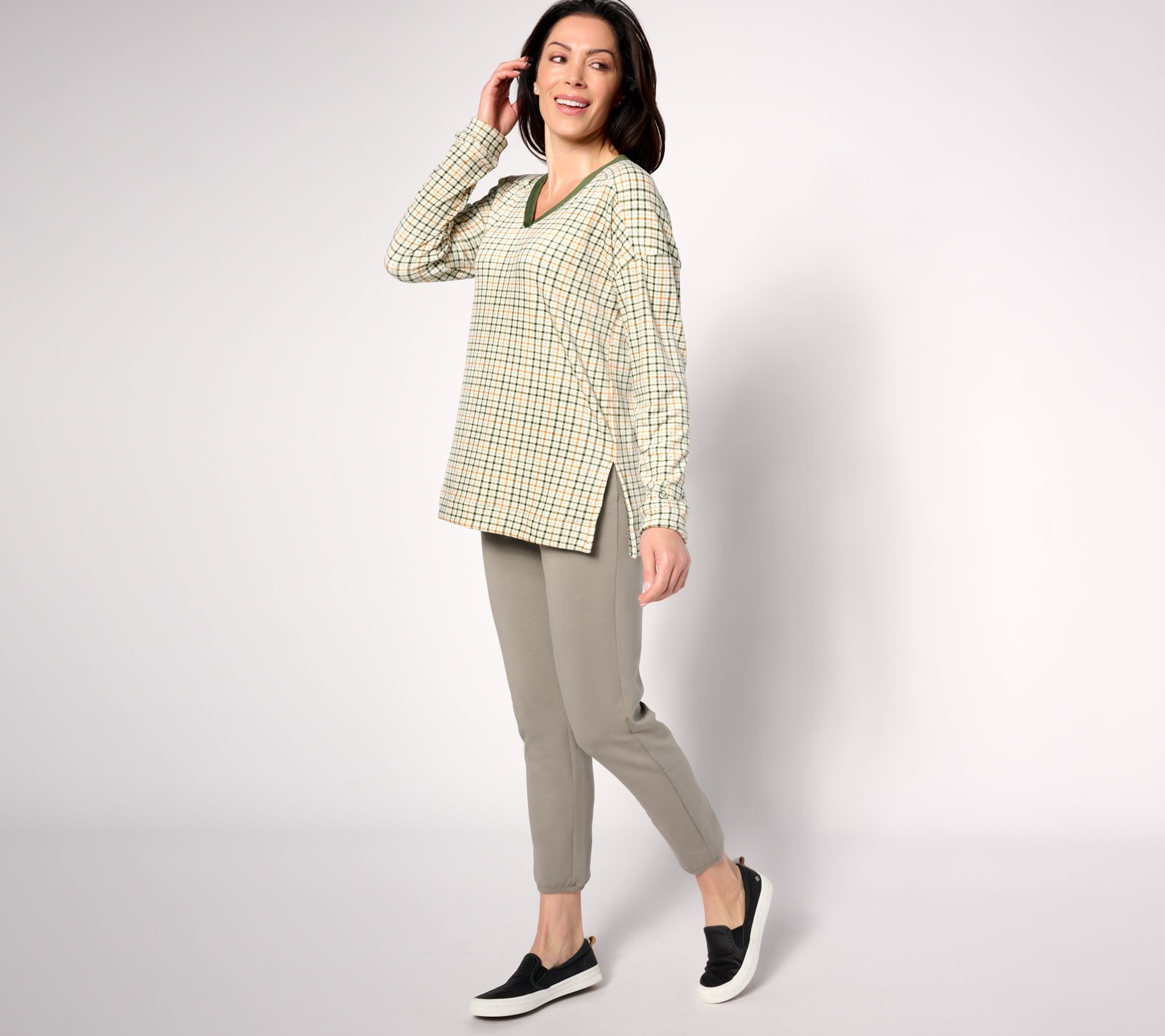 Set yourself up for a simplistic yet amazing look when you wear this V-neck tunic! From Cuddle Duds.