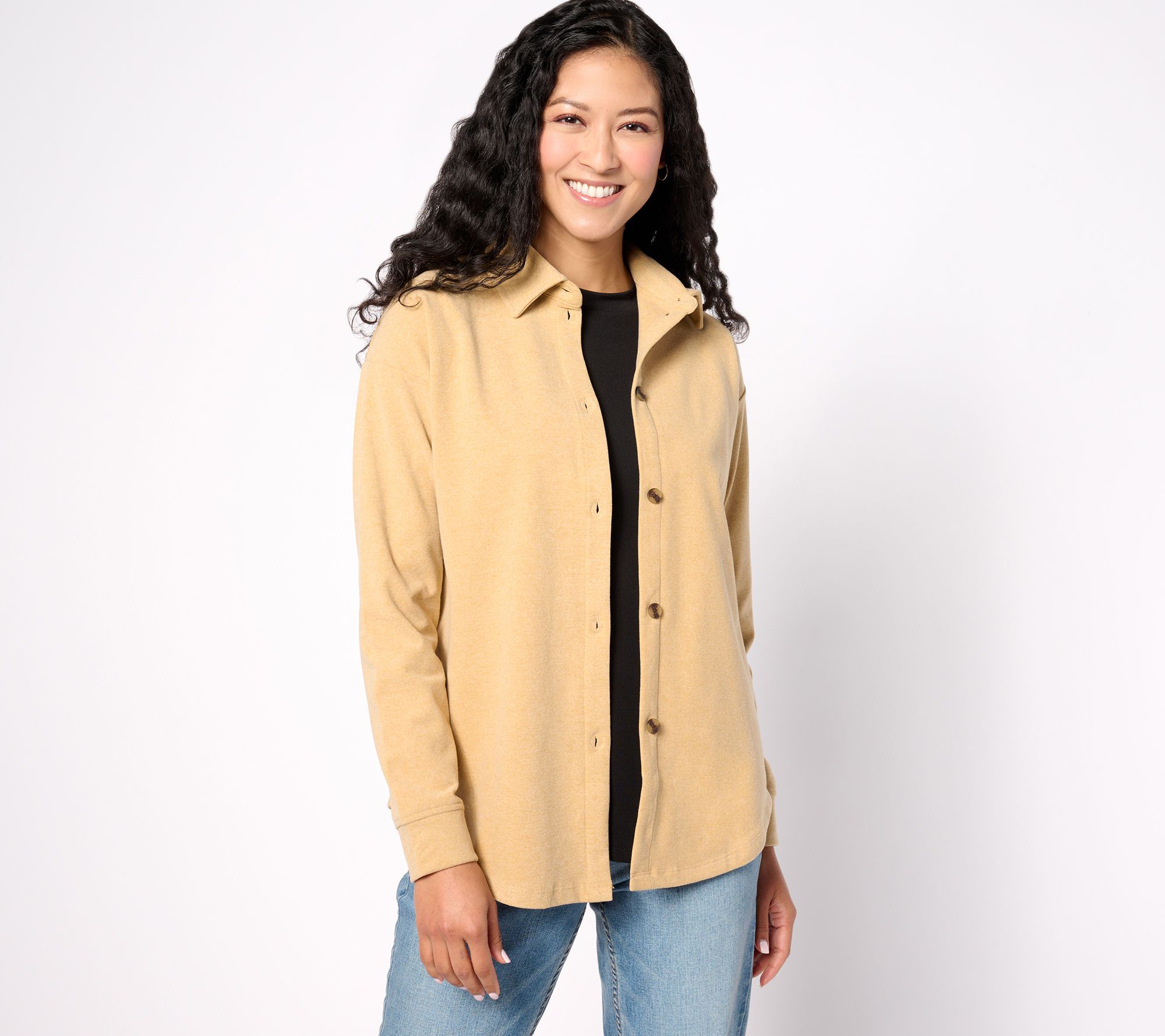 The only thing more fun than letting the word shacket roll off the tongue? Popping on this endlessly wearable shirt-meets-jacket for cool-weather adventures on both sides of the threshold (think: tailgating, fire-pit sitting, and baking marathons). Delightfully brushed, the compact jersey fleece has just the right amount of weight and structure to keep the vibe polished and practical wherever you roam. Hooray for fewer wardrobe changes! From Cuddl Duds.