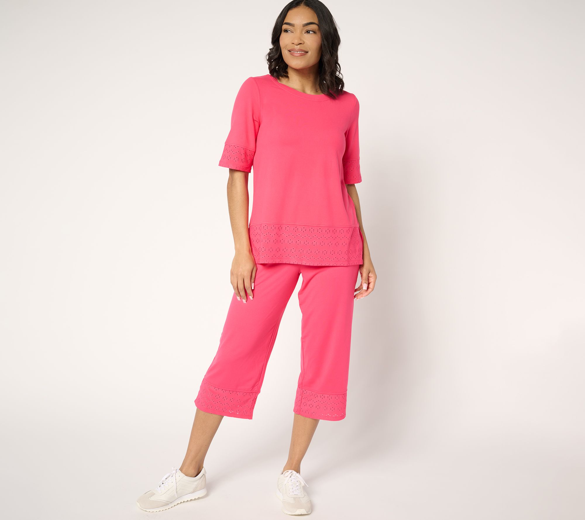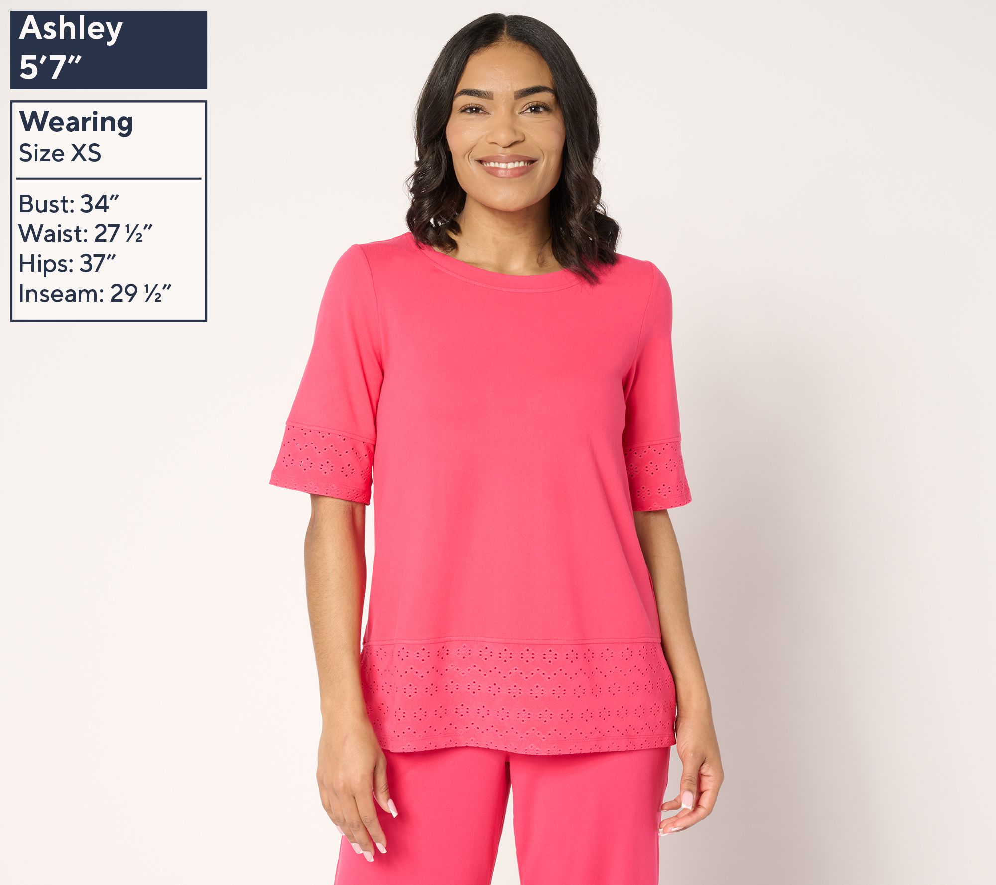 "As Is" Cuddl Duds Flexwear with Eyelet Crew Neck Top