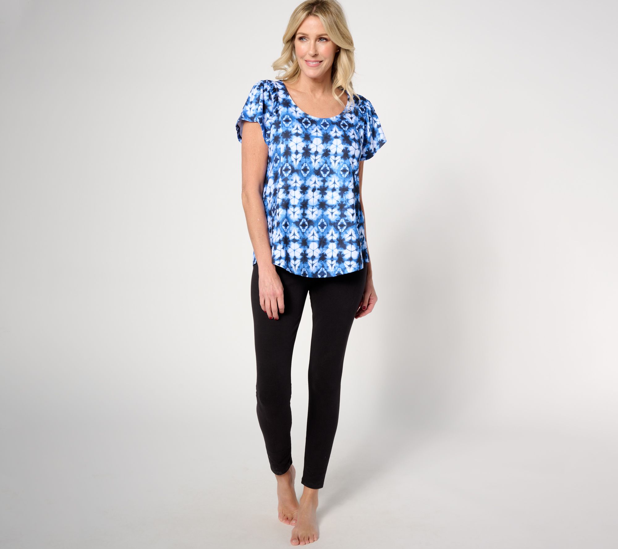 Feel feminine and flirty in this flutter-sleeve top. Peached jersey fabric feels oh-so soft on your skin, while spandex provides flexibility and stretches to move with you. From Cuddl Duds.