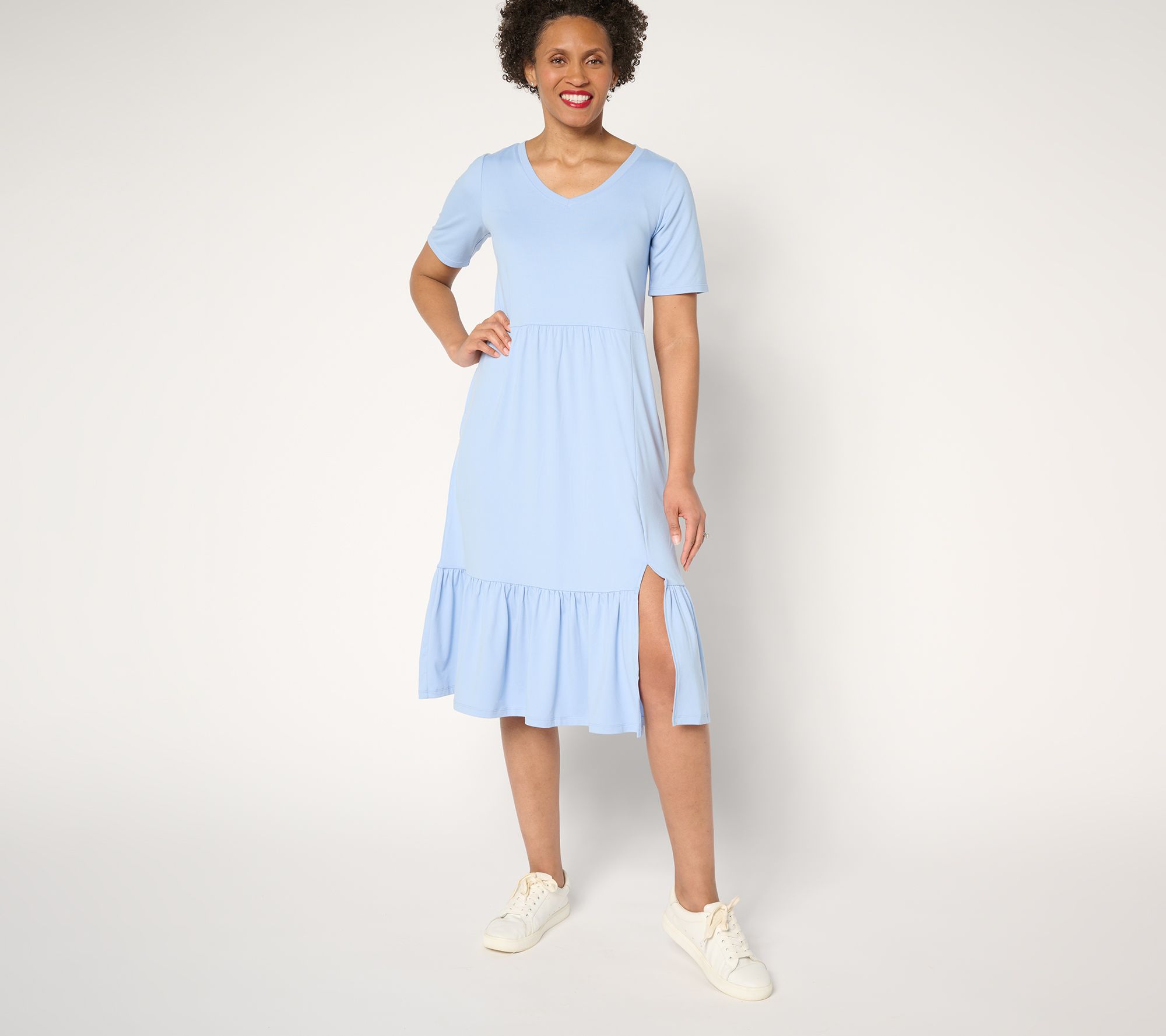 "As Is" Cuddl Duds Flexwear Tiered v Midi Dress