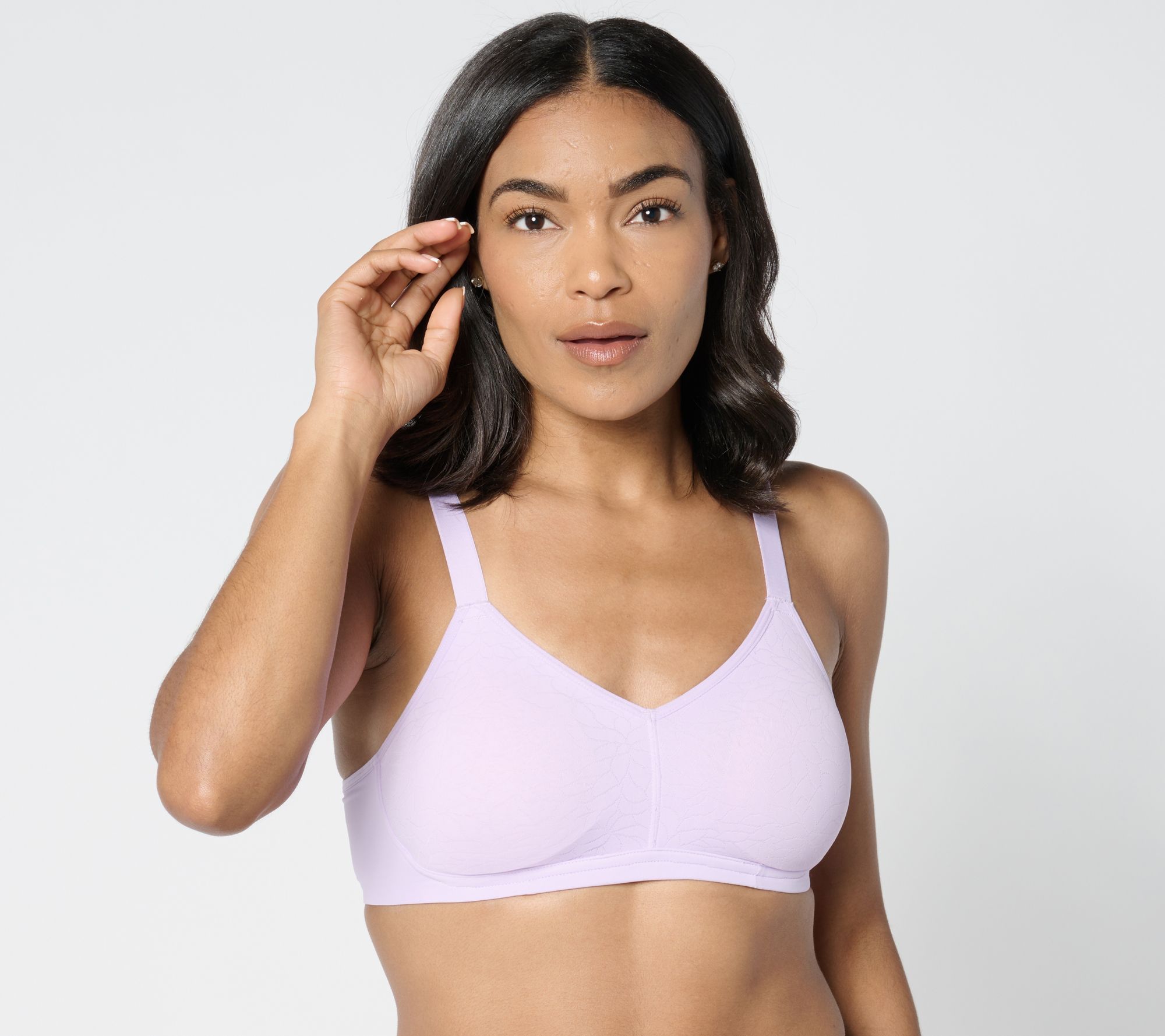 Forget wires or pads. This smooth-fitting wire-free lounge bra in Softest Stretch jacquard is thoughtfully fabricated from front to back and top to bottom, providing fuss-free comfort and natural-looking shaping as versatile for a WFH day or a shopping run as it is a girls' night in. From Cuddl Duds.