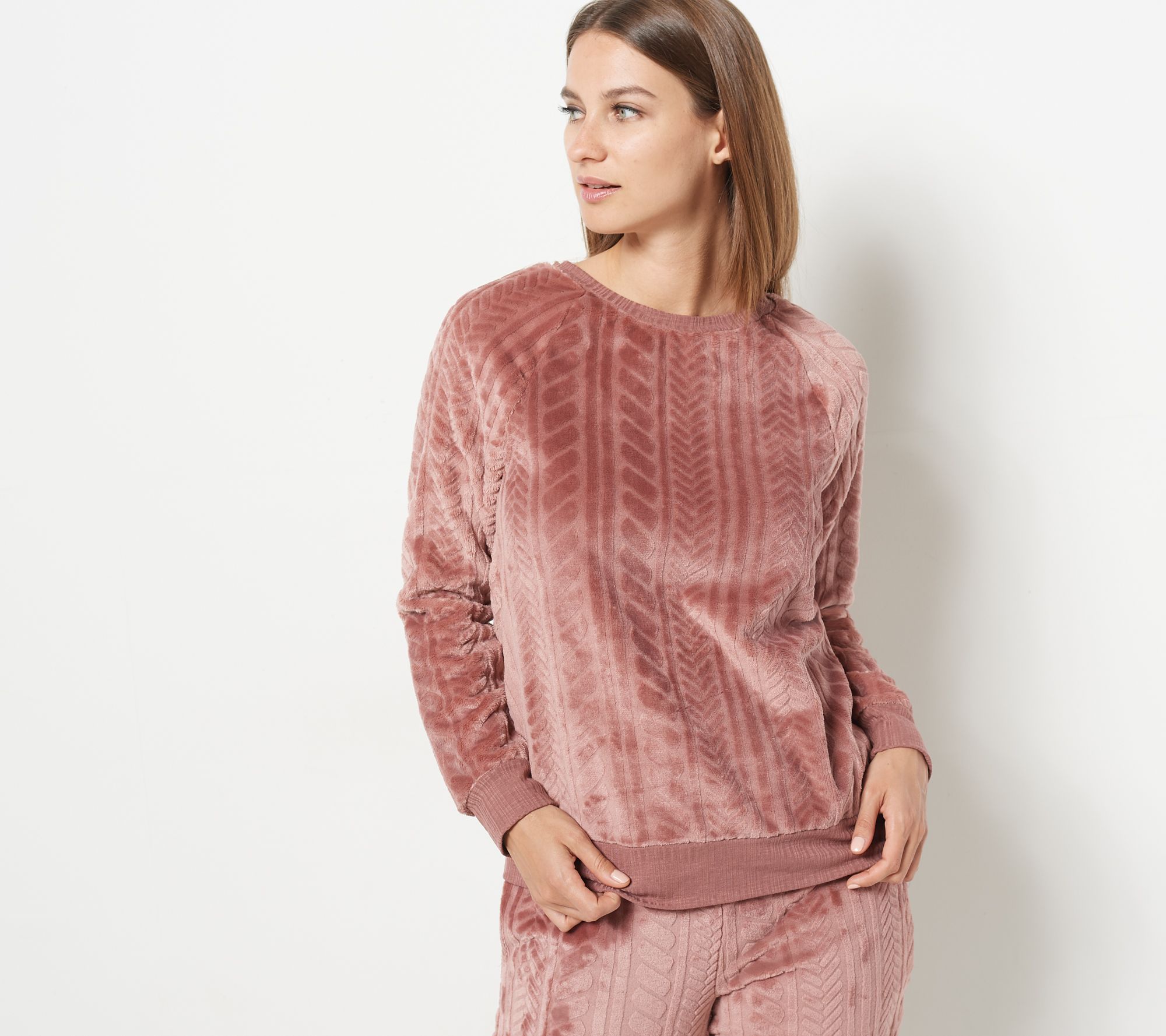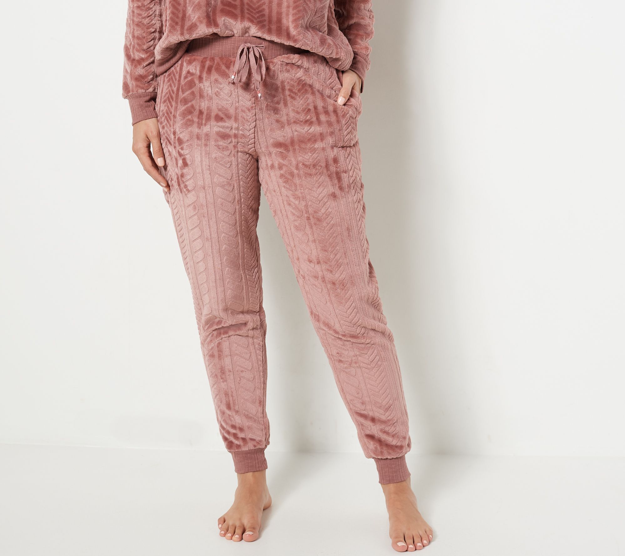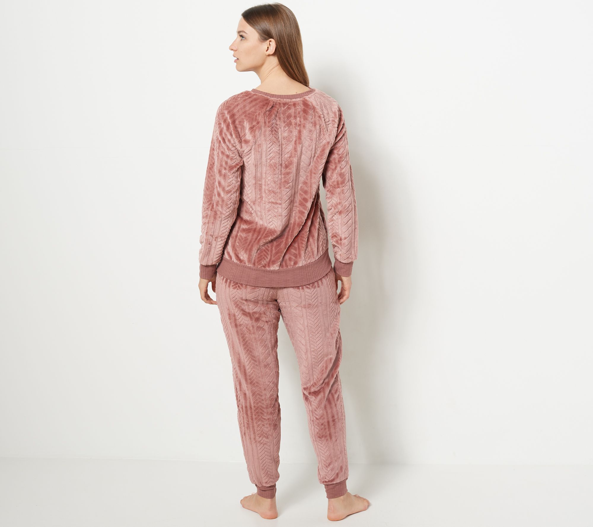 "As Is" Cuddl Duds Petite Cable Plush Jogger Pajama Set