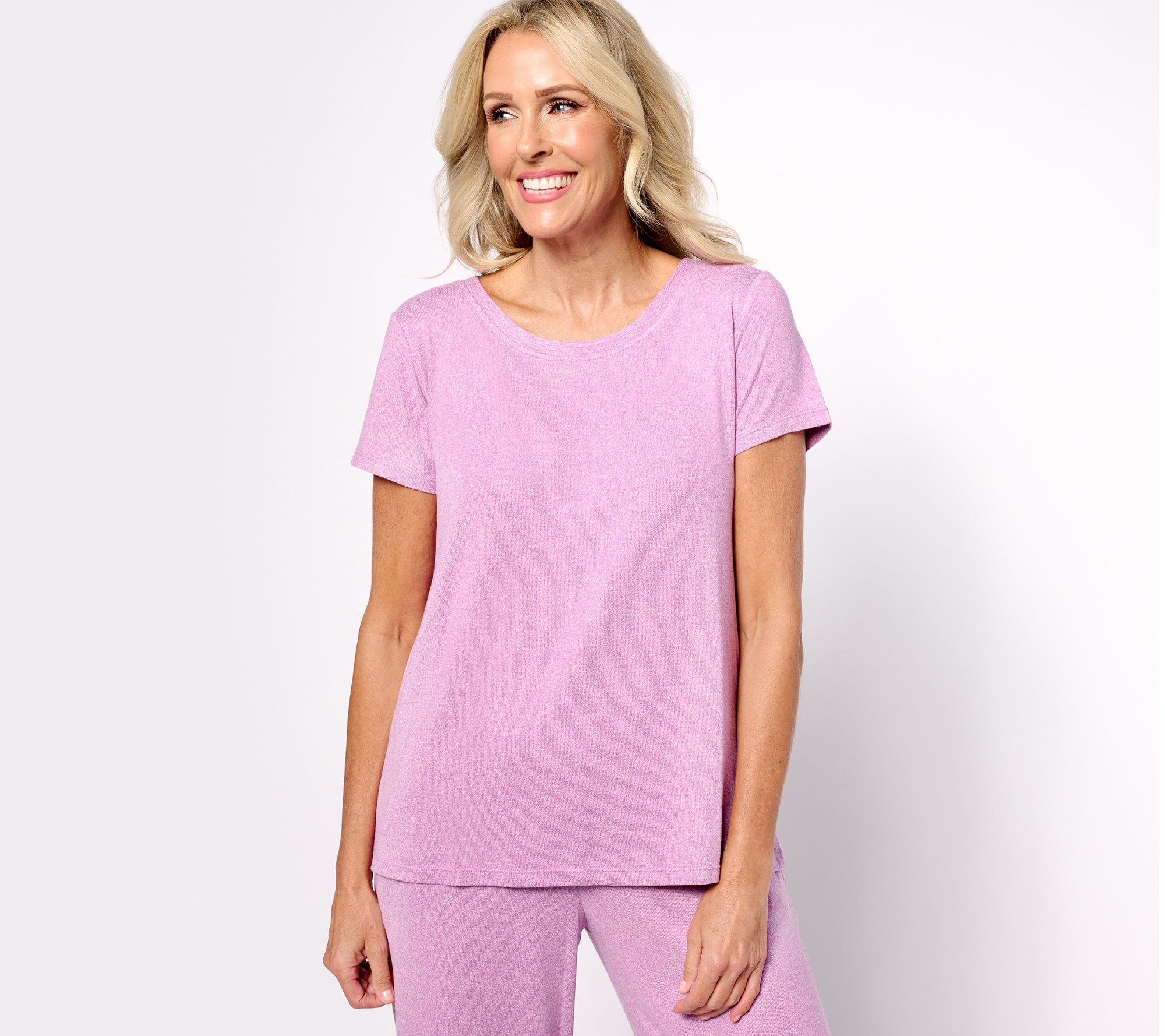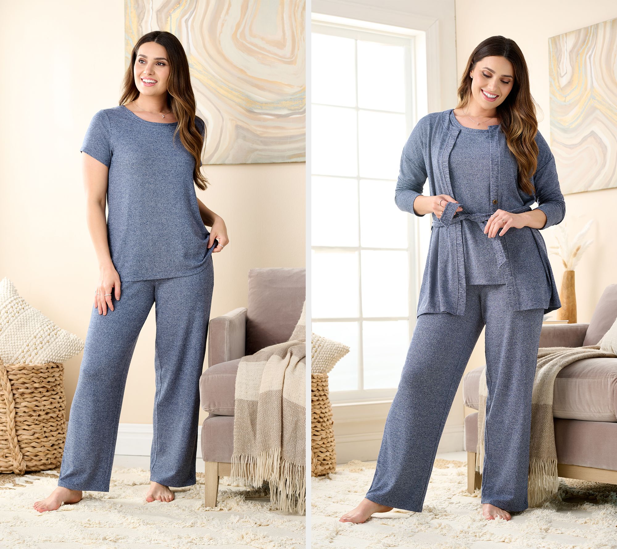 This every-day-feels-like-a-Saturday set in Seriously Soft knit may be matchy-matchy (so in!), but that doesn't mean you can't separate these pieces to pair with other closet faves. With a versatile crewneck tee, straight-leg pants with pockets, and a self-tie wrap (bonus points for the button closure), this work-leisure winner takes you from morning meetings to me-time in casual style without feeling underdressed. Seriously. From Cuddl Duds.