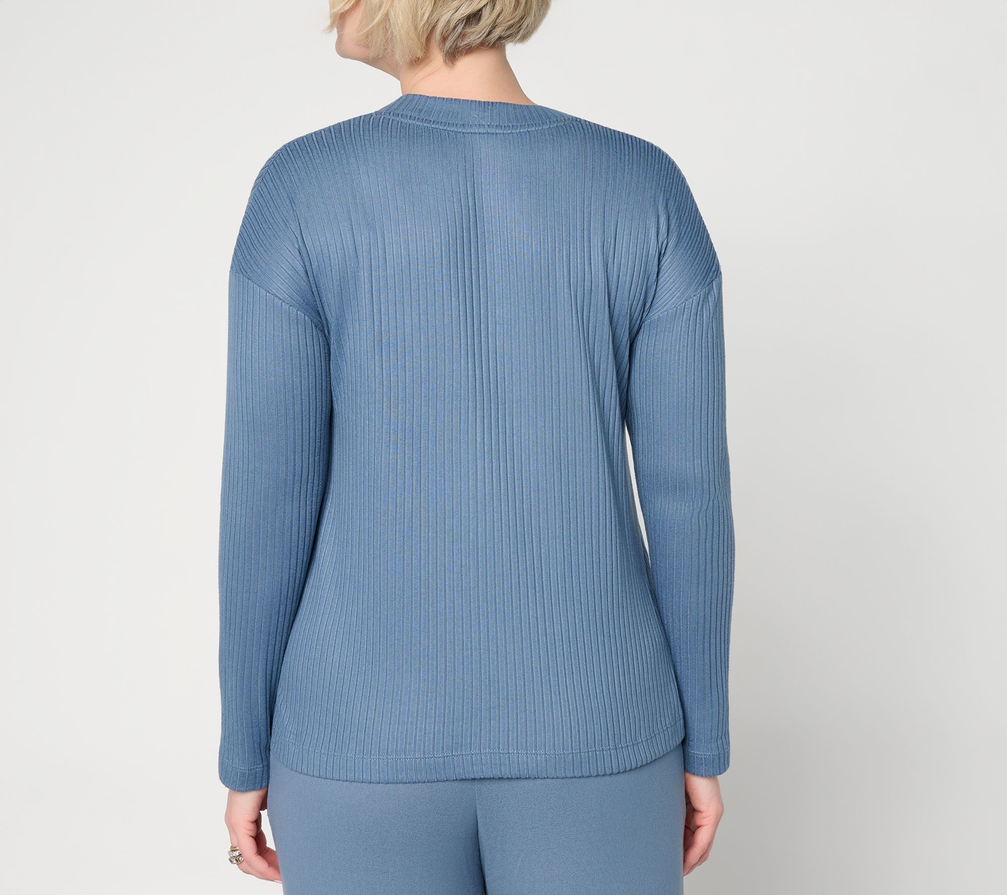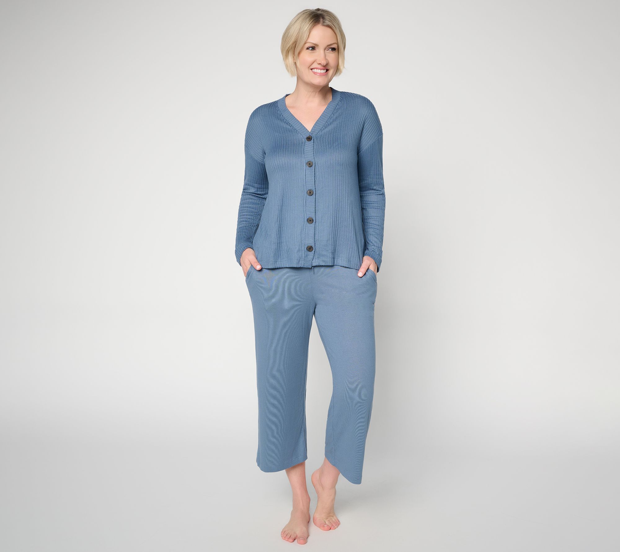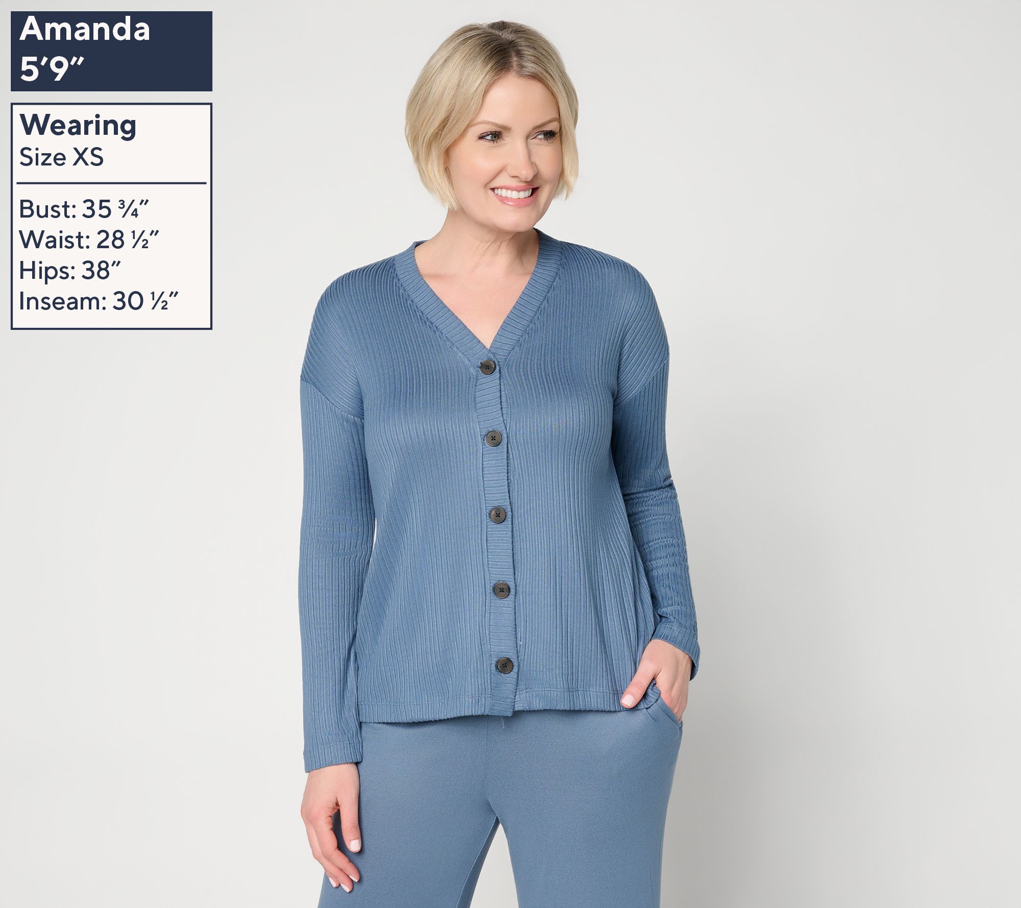 Whether you're catching up with a friend over coffee or winding down at home, this rib knit cardigan adds a soft and stylish layer to your ensemble. The button-front design with a V-neckline and long sleeves offers comfort and versatility that transitions easily between days out and cozy nights in. From Cuddl Duds.