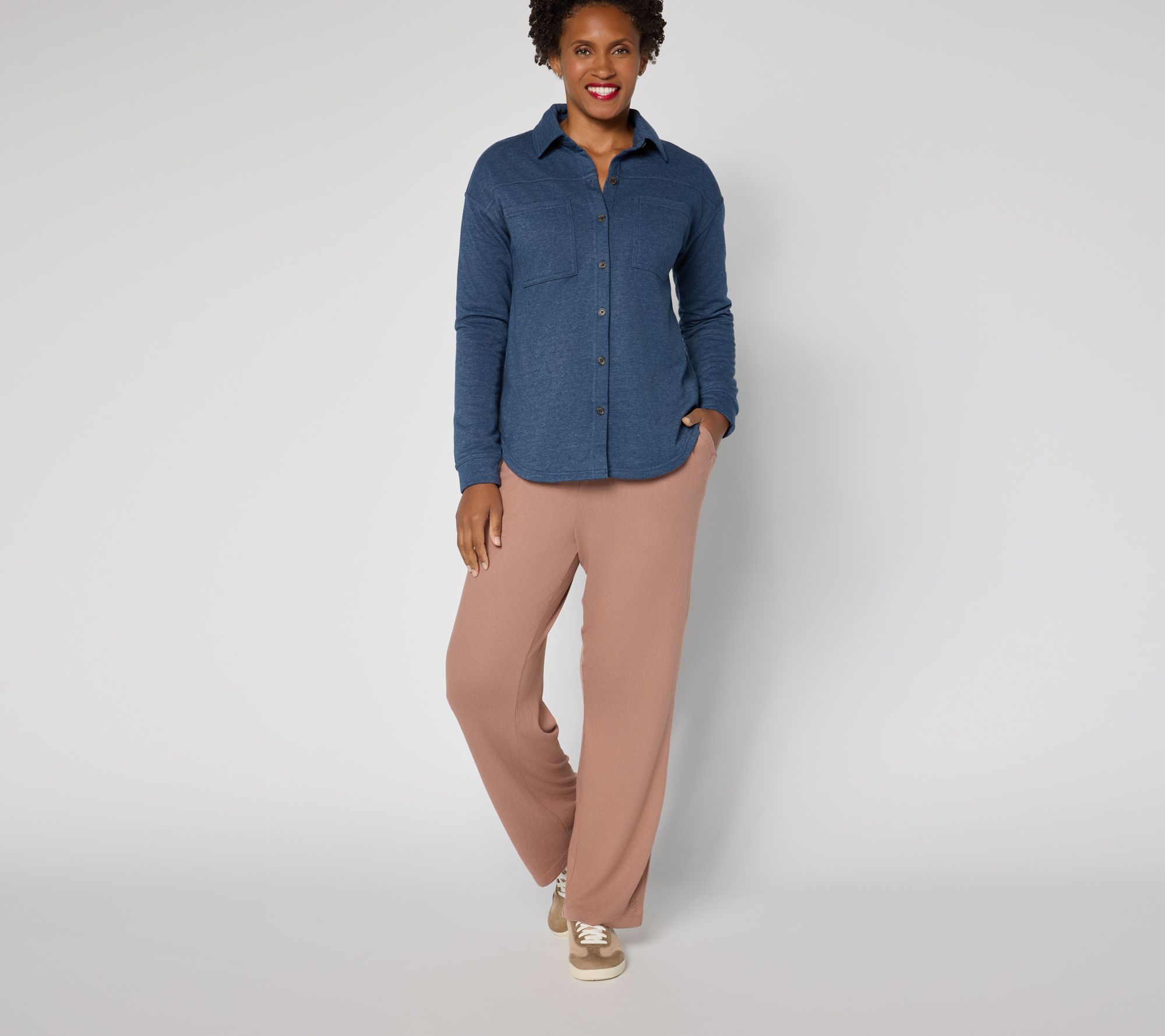 Embrace everyday comfort with these classic pants designed for relaxation and effortless style, whether you're lounging at home or running quick errands. The smooth knit fabric, easy pull-on style, and roomy side seam pockets create a laid-back look that moves with you all day. From Cuddl Duds.