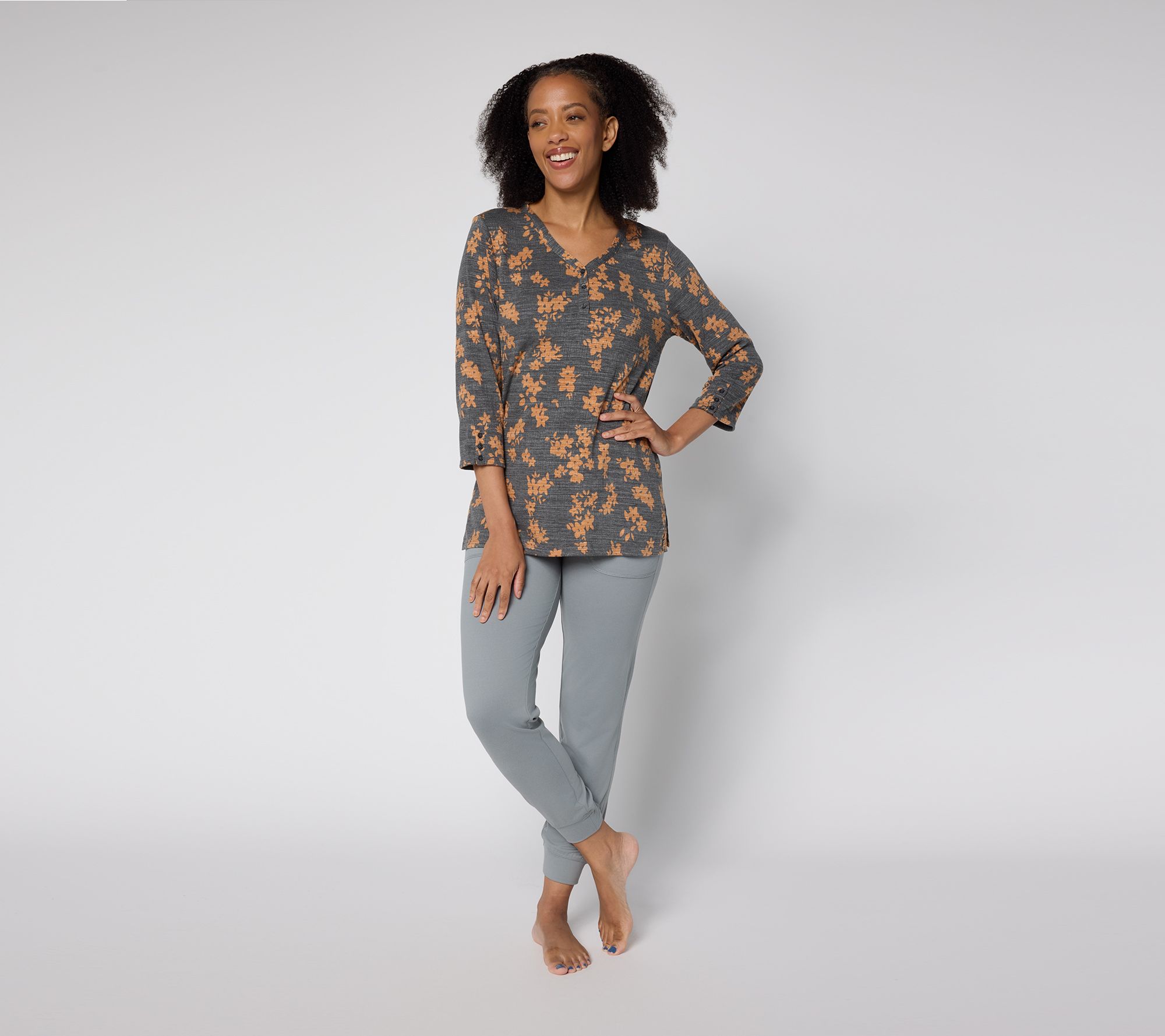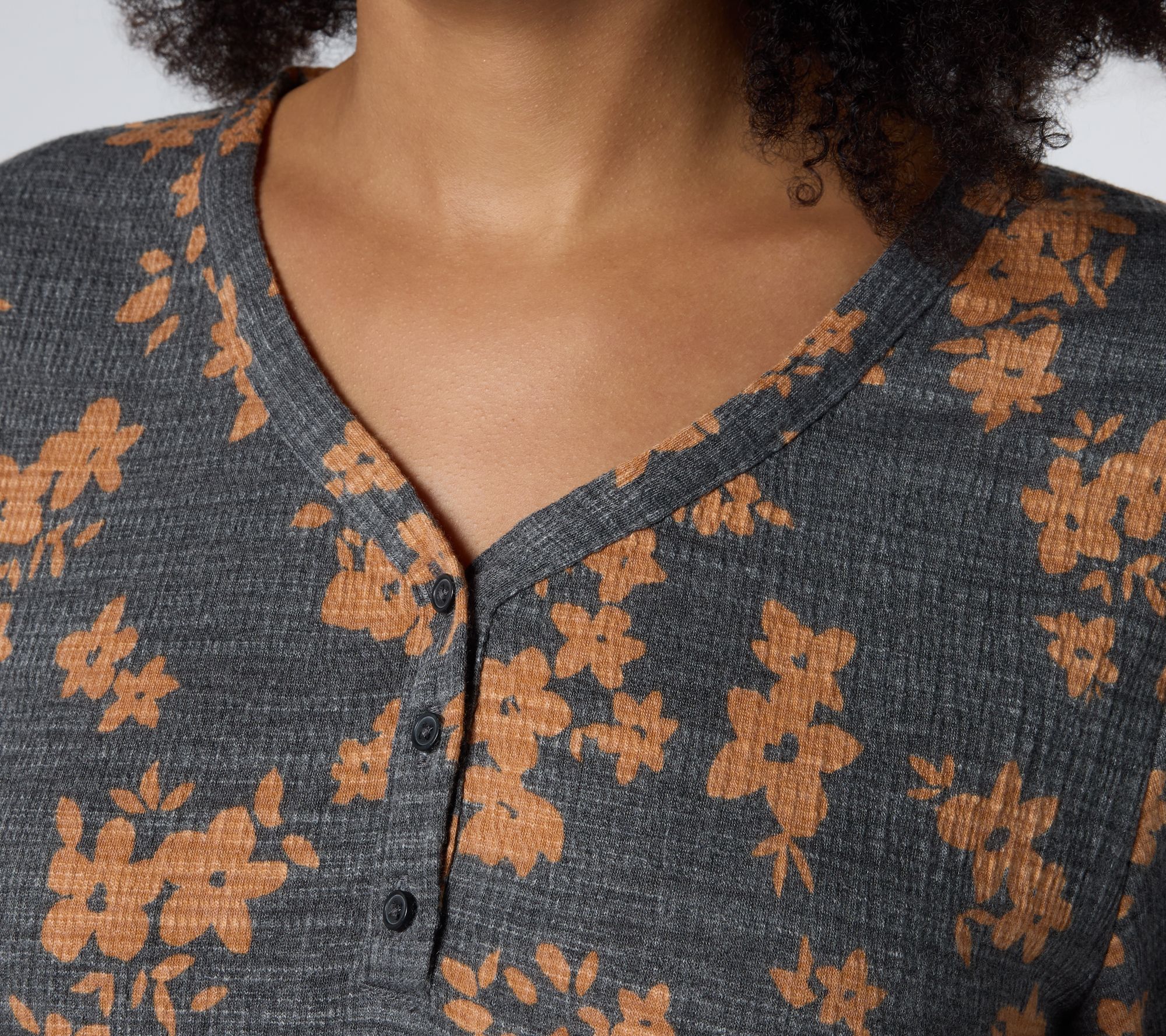 "As Is" Cuddl Duds Slub Knit Henley Tee
