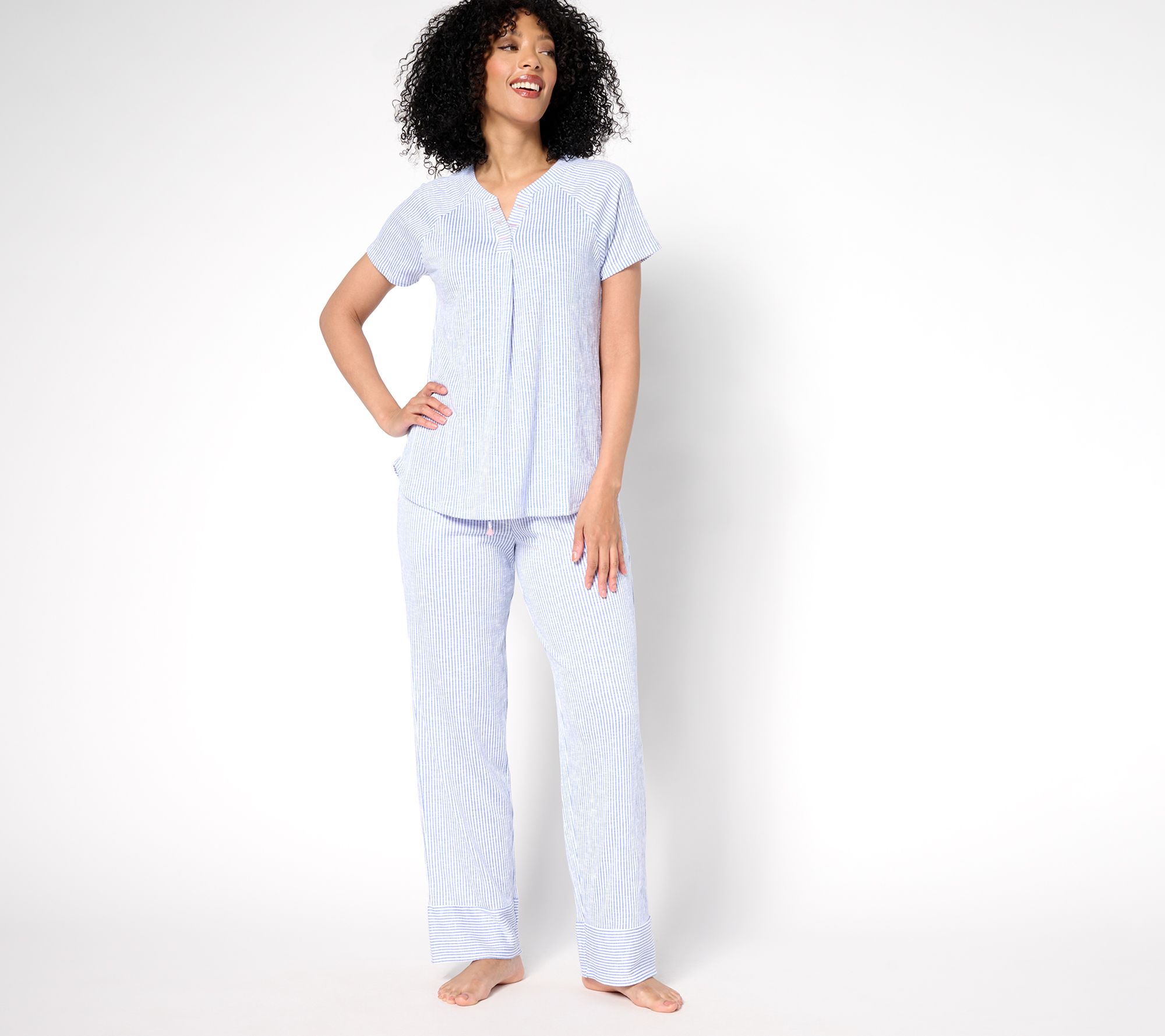 Show your stripes! With a flowy fit and unfussy slub knit fabrication, this pretty pajama set is here for however you like to unwind. And sleep, too. From Cuddl Duds.