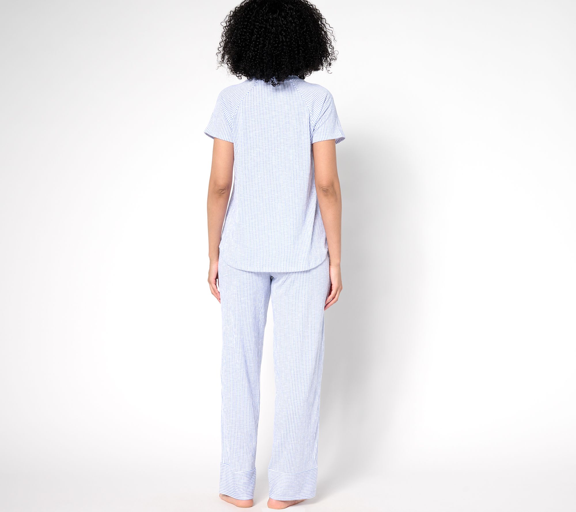 "As Is" Cuddl Duds Slub Knit Stripe Pajama Set