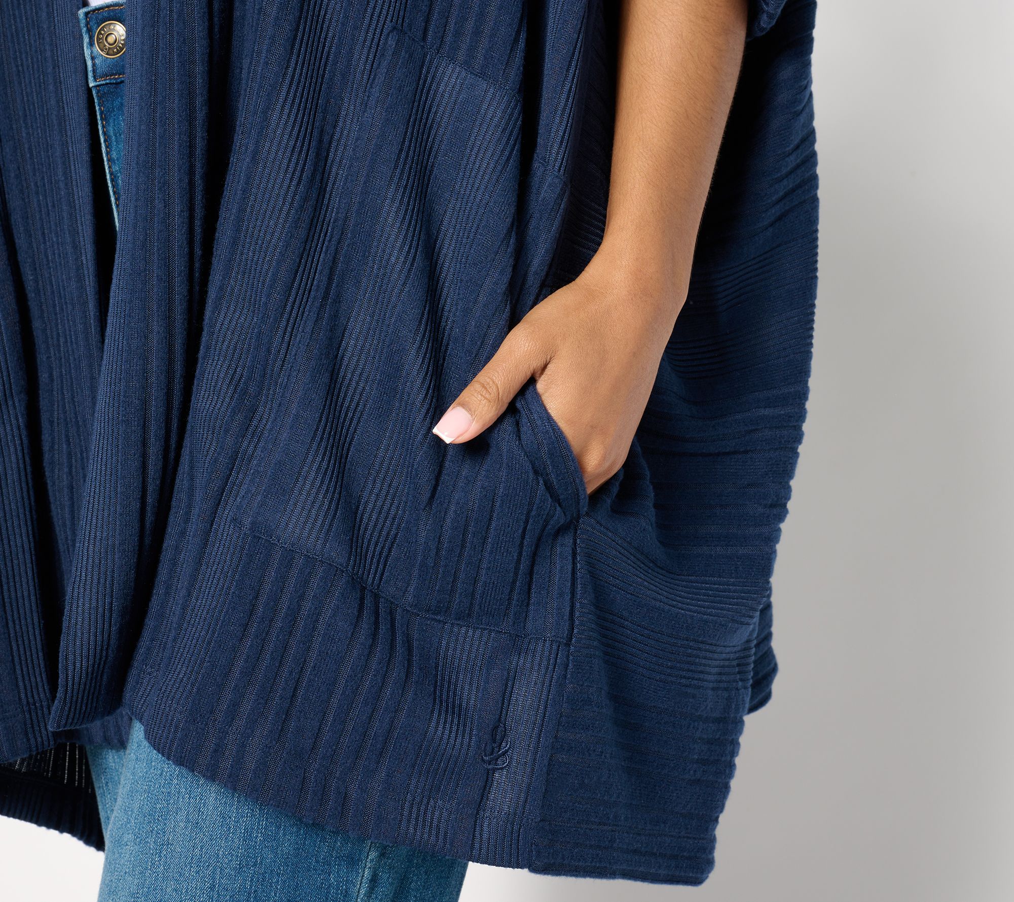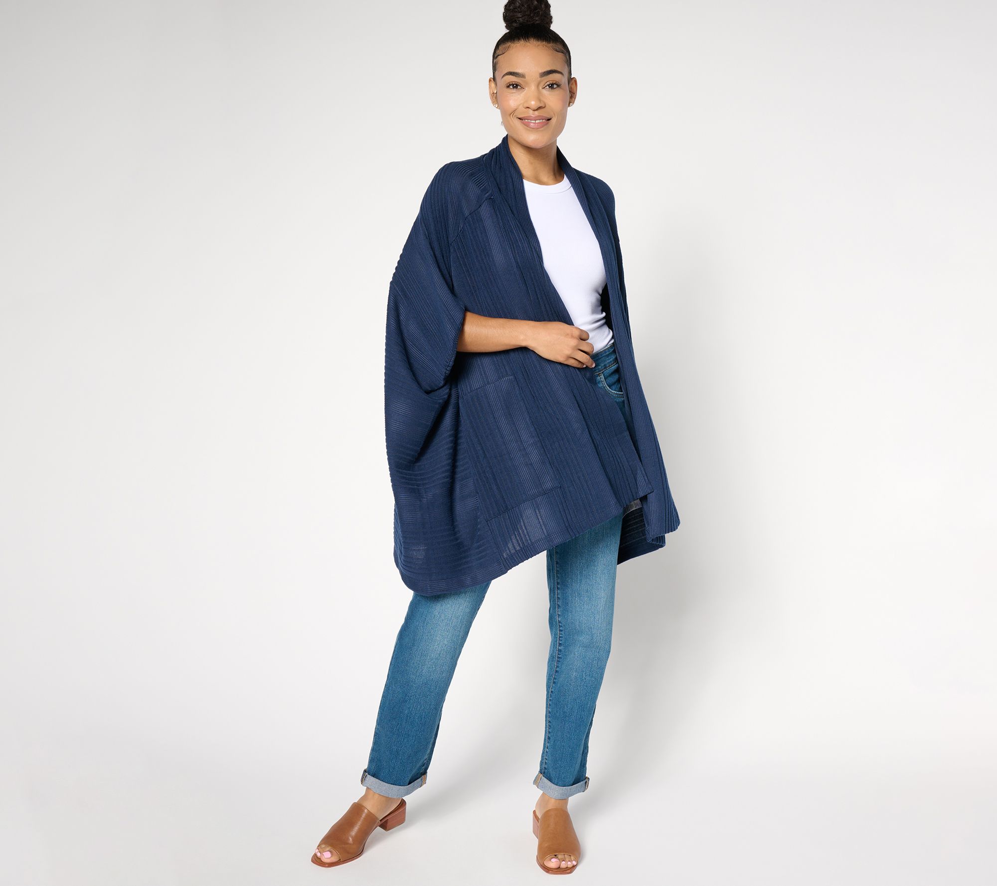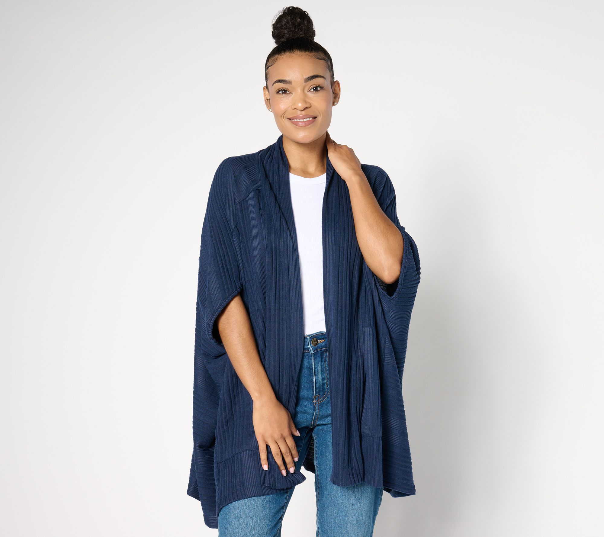 A laid-back option for at-home days or casual outings, this variegated rib cocoon wrap will soon become one of your favorite layered looks. From Cuddl Duds.