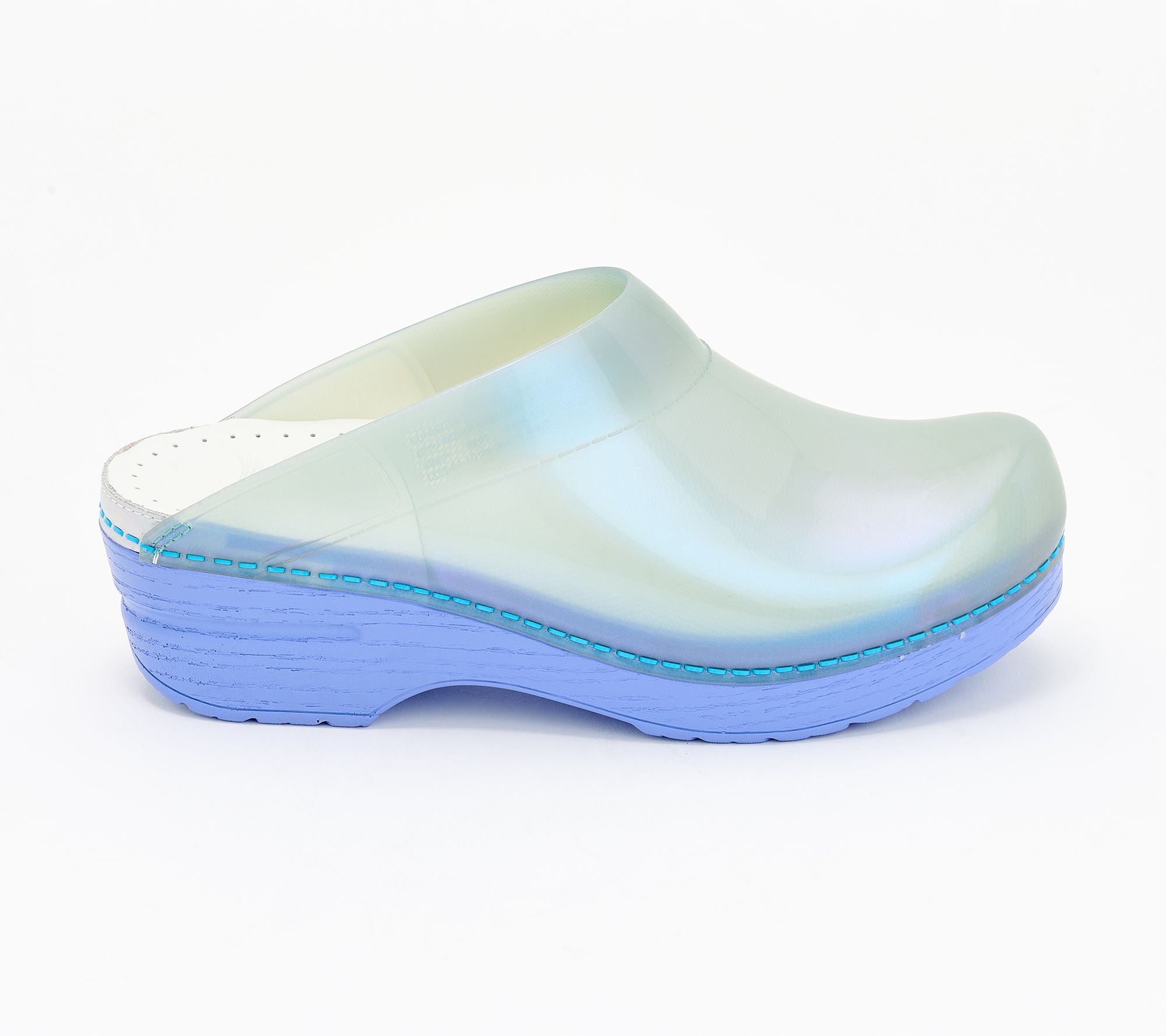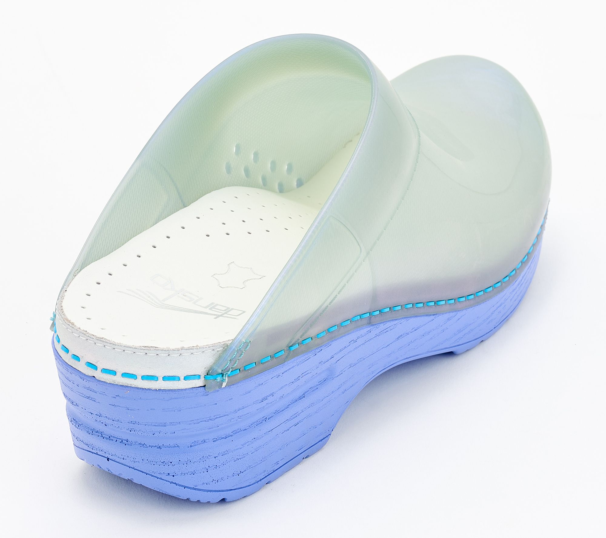 The classic clog gets a contemporary update with this translucent design. Sonja is the clear choice if you want a shoe that's effortless to slip into, comfortably cushioned with a rocker bottom outsole, and a conversation starting style you'll love to show off. From Dansko.