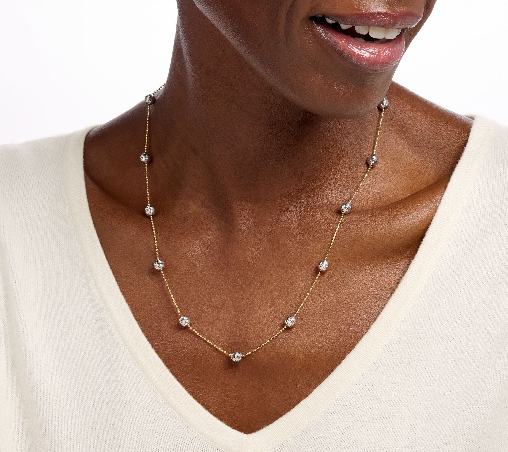 Sparkle and sophistication meet in this 20" station necklace, where diamond-cut beads catch the light with every move. Whether layered with other favorites or styled solo, this versatile piece brings elevated shine to any neckline, making it a tasteful choice for everyday looks or special evenings. From David Markstein.
