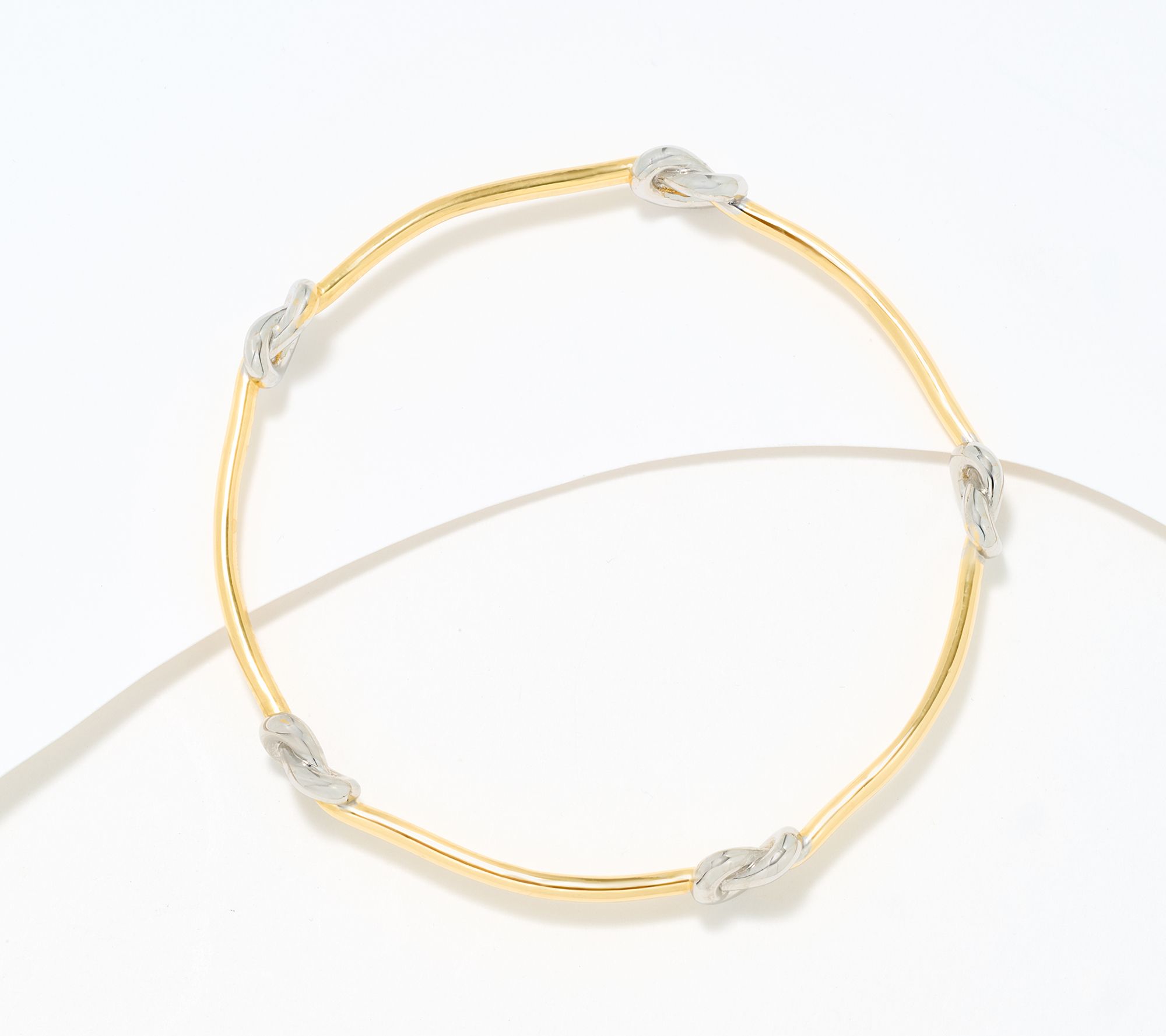 • Two-tone rhodium-plated bronze: 18K yellow gold-plated bangle, rhodium-plated love knots