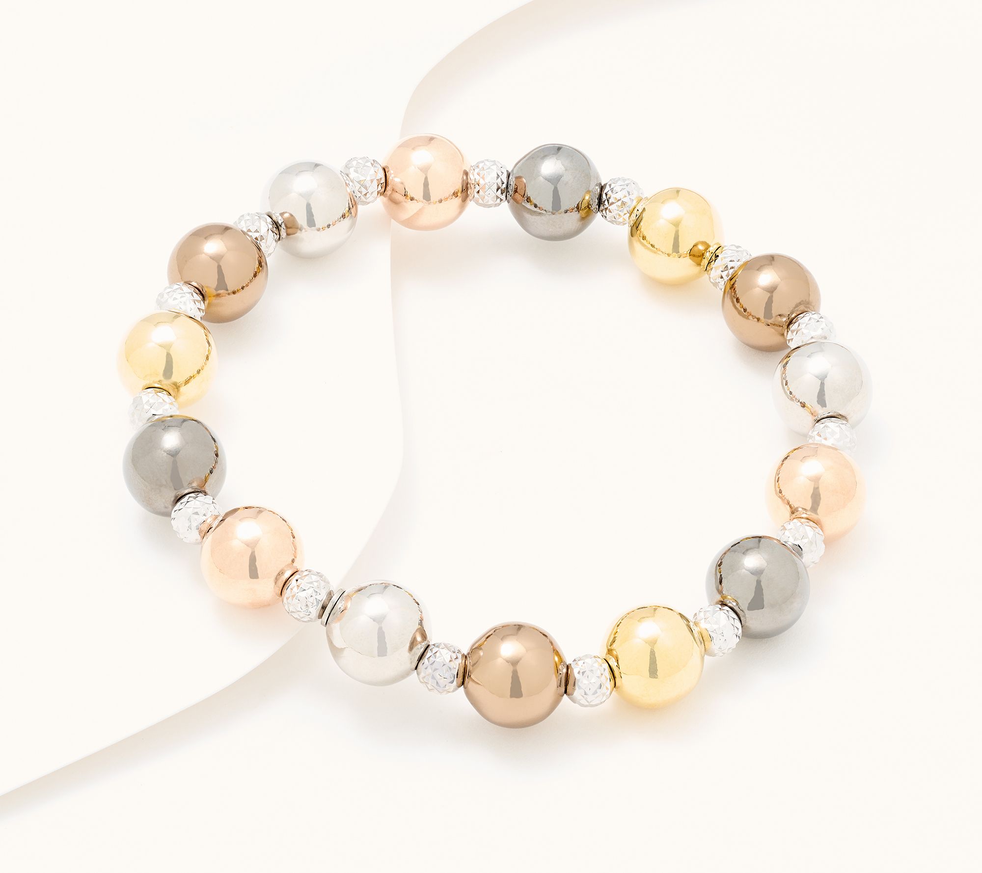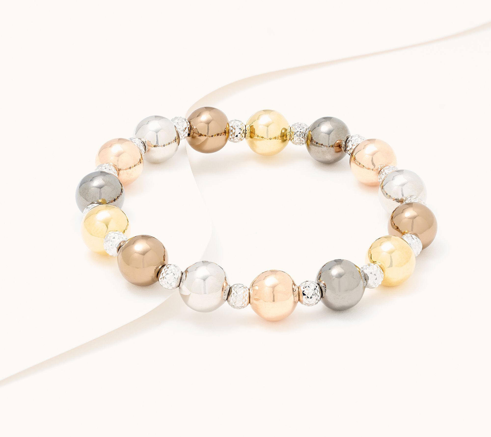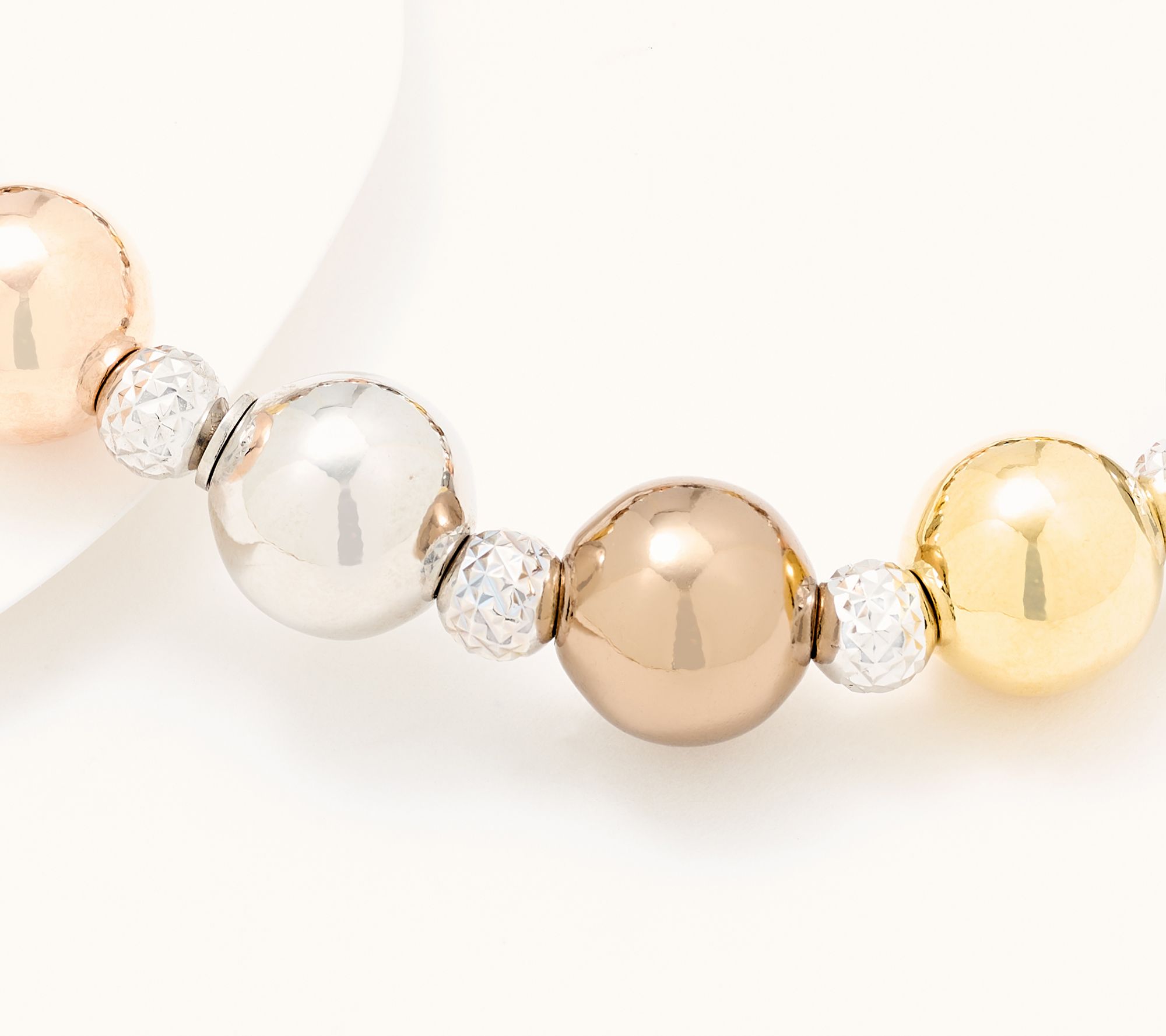 A delightful gift for a special friend (or yourself!), this gorgeous stretch bracelet wows with 5mm diamond-cut beads that sparkle and alternating 10mm polished beads. Pair it with a bevy of bangles, a favorite watch, or let it shine on its own -- there's no wrong way to wear this beauty! From David Markstein.