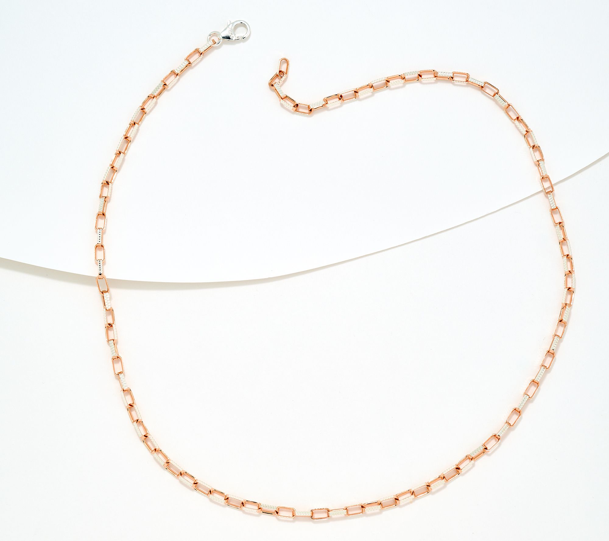 • Elongated oval links; diamond-cut finish