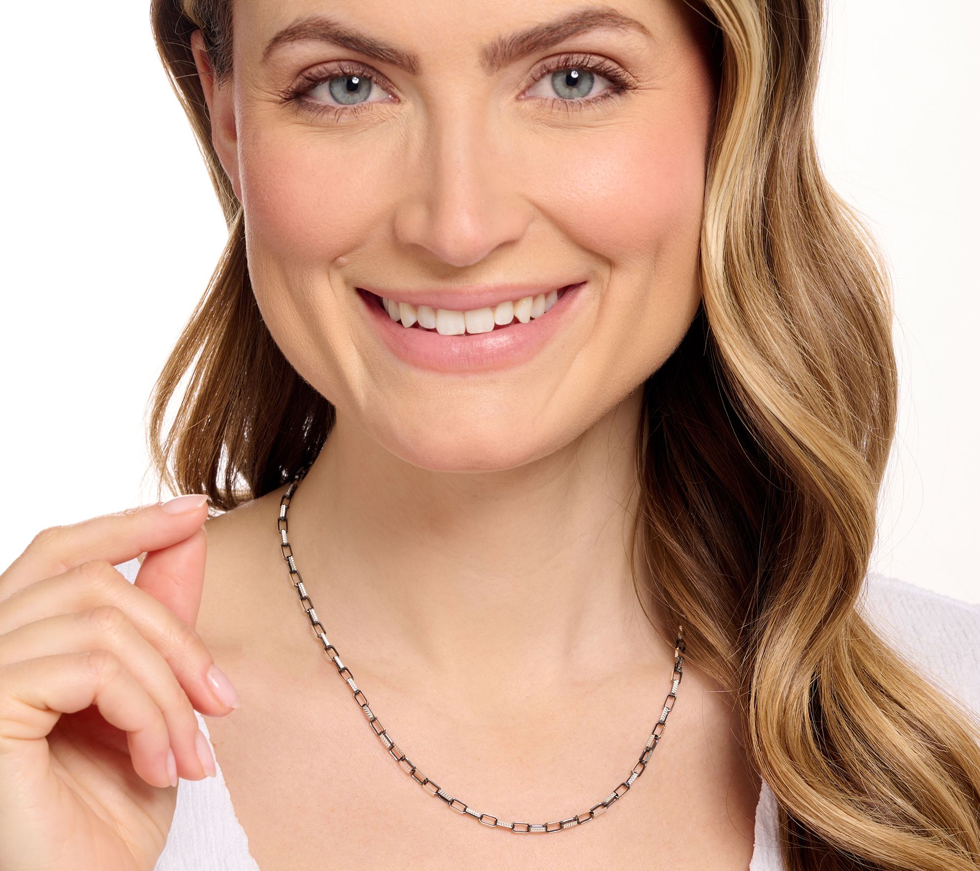 Debut a new luxe look at your next social event with this paperclip necklace. Fresh from the latest jewelry fair, this updated classic is designed with elongated oval links and a diamond-cut finish, exuding effortless elegance and standout sophistication. From David Markstein.