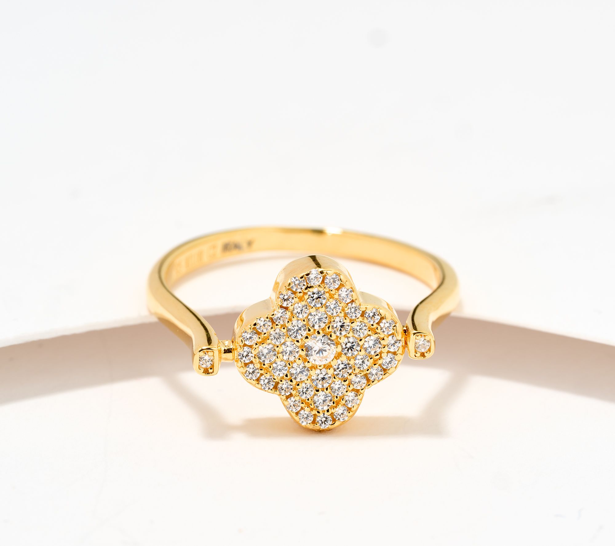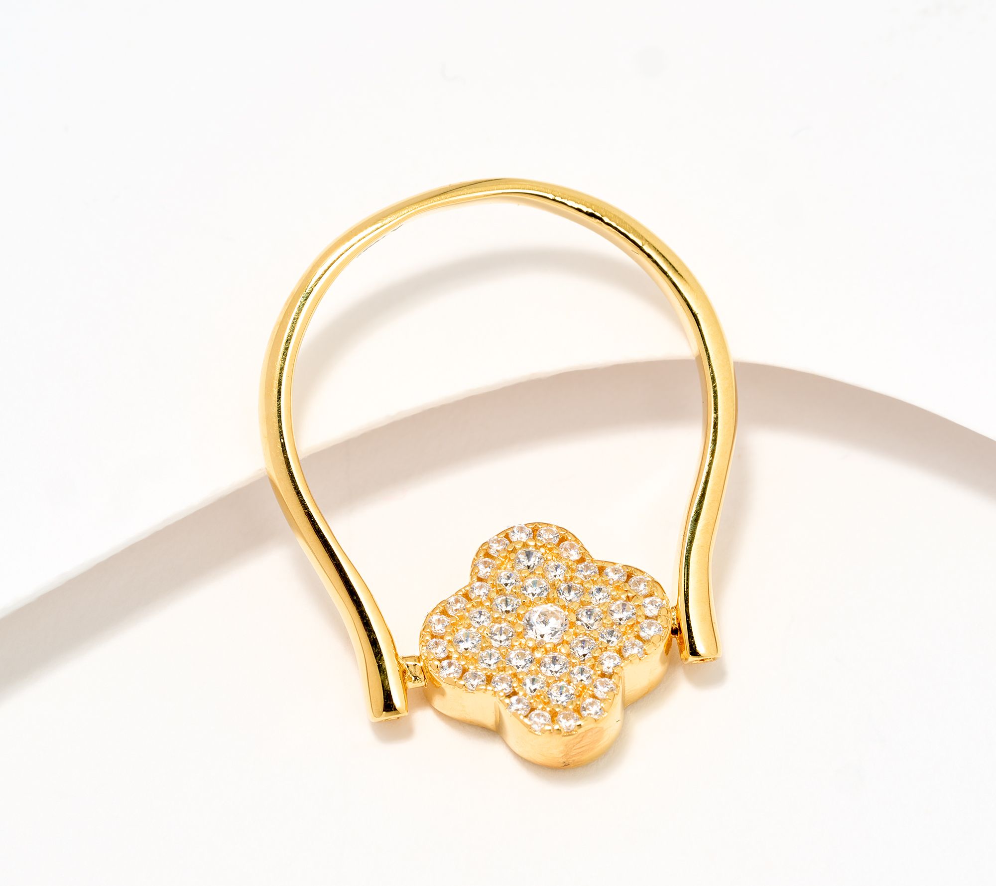 Two luxurious looks in one, this reversible ring will always add a fresh flourish to any fashion statement. One side is a celebration of sparkle with the quatrefoil design covered in cubic zirconia. Flip it to the other side for something more subdued -- a polished onyx gemstone creates a chic shape in a bold black color. From David Markstein.