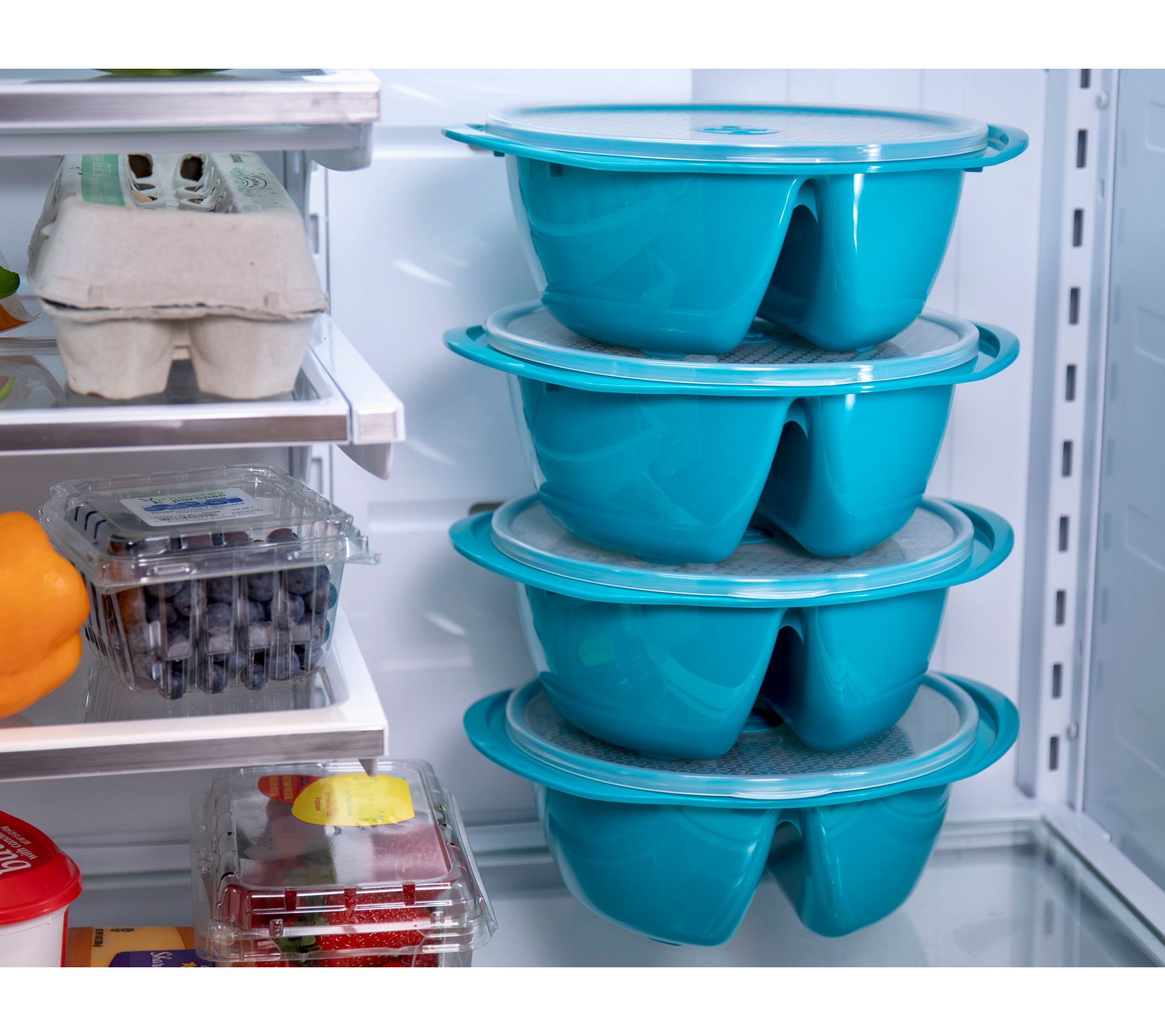 Ideal for reheating leftovers in the microwave, this set of segmented split bowls will keep sauces and gravies from mixing in with veggies or rice and making a soggy mess. Stack them in the fridge to save space. From Decor.