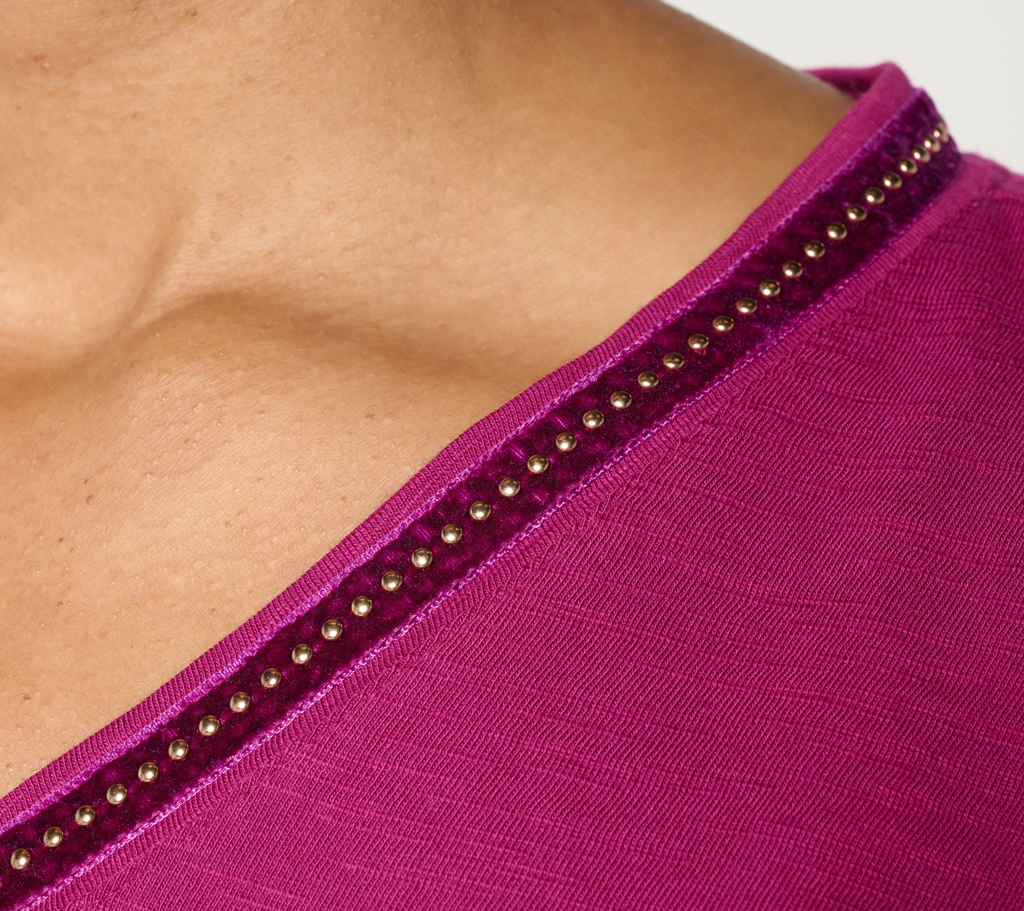 "As Is" Denim & Co. 100% Cotton Embellished Long Sleeve V-Neck Top