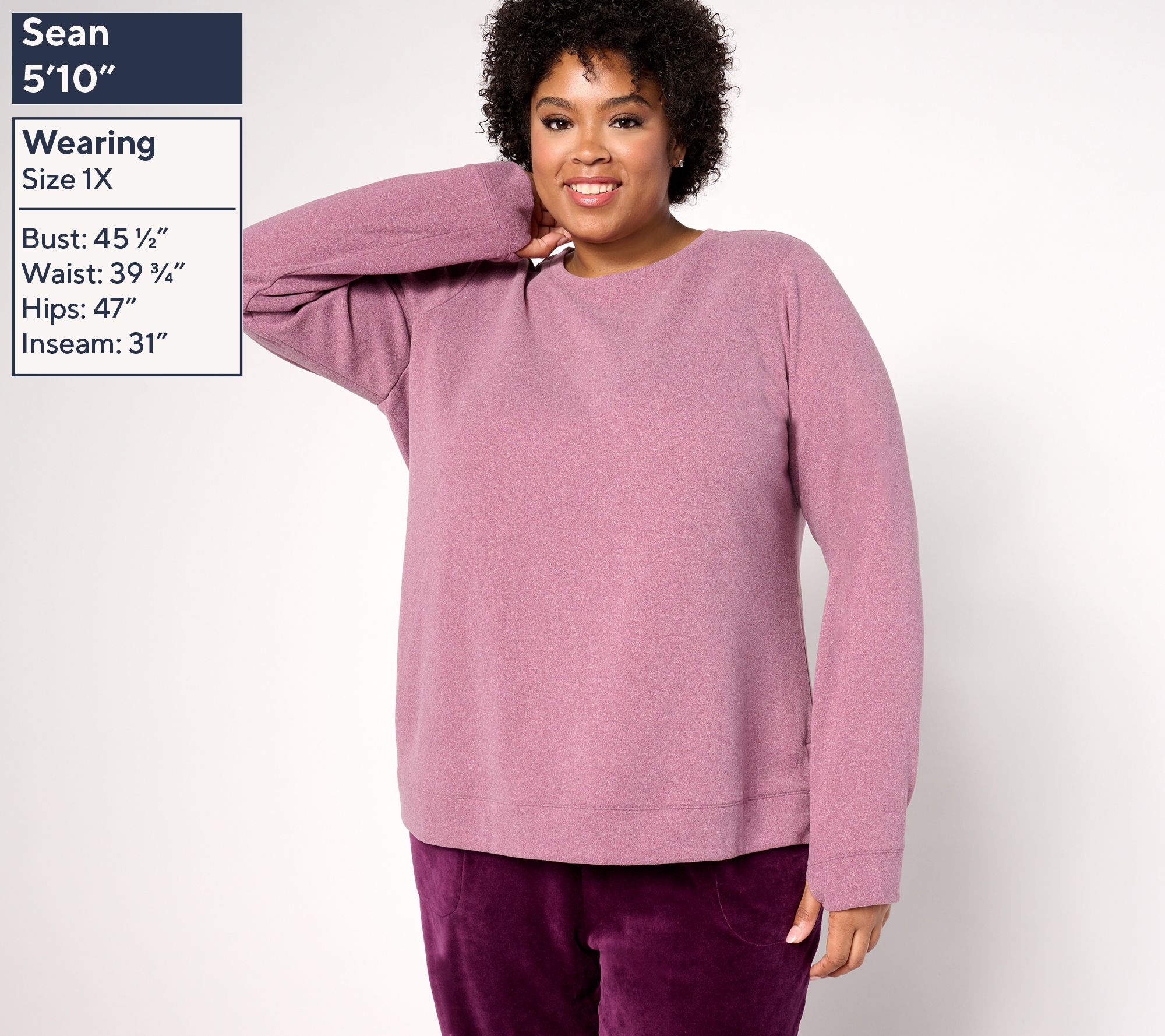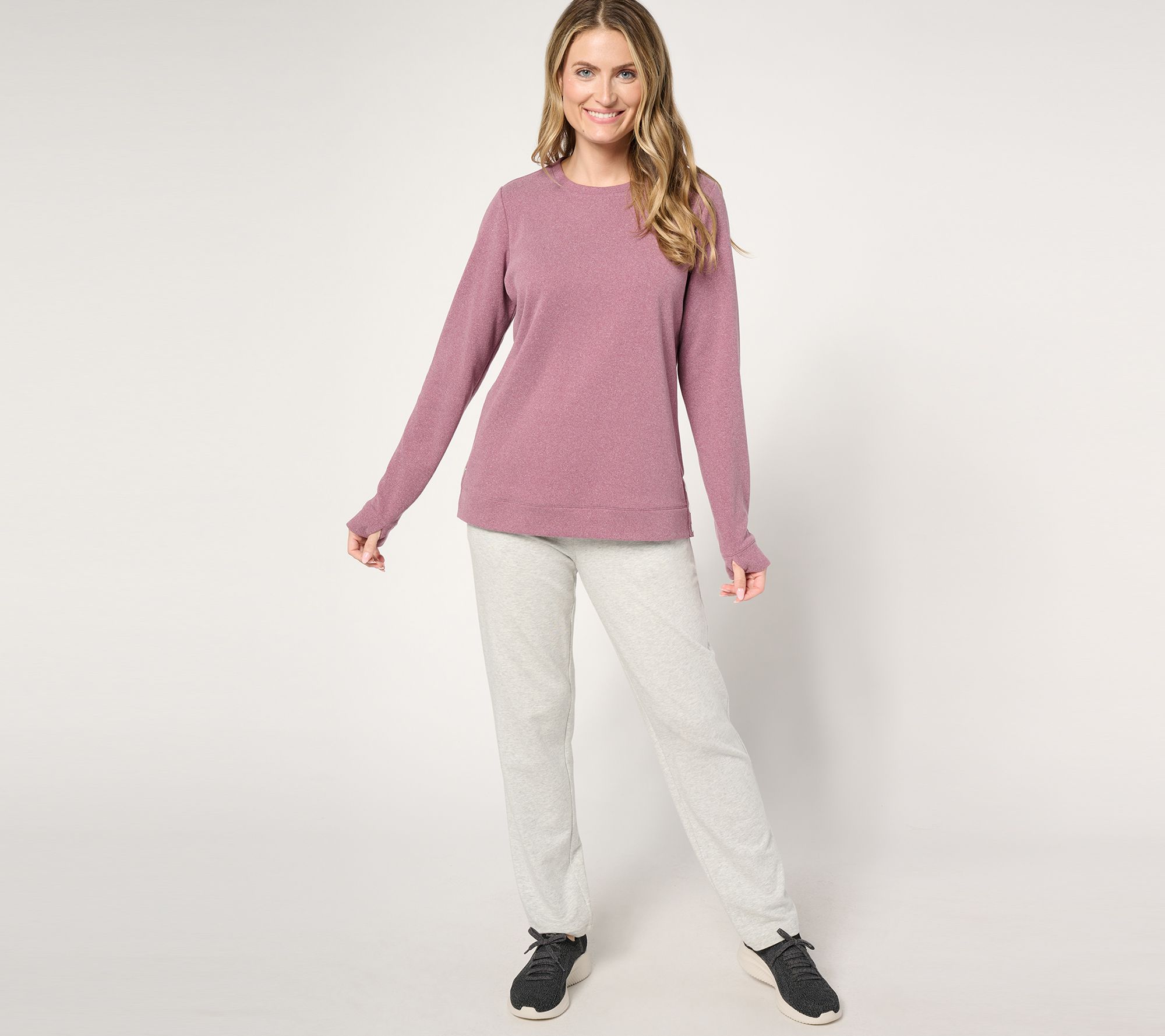 When the temperature isn't in sync with your to-do list, slip on this cozy, thoughtfully detailed crewneck in active fleece and get after it! From Denim & Co.® Fashions.