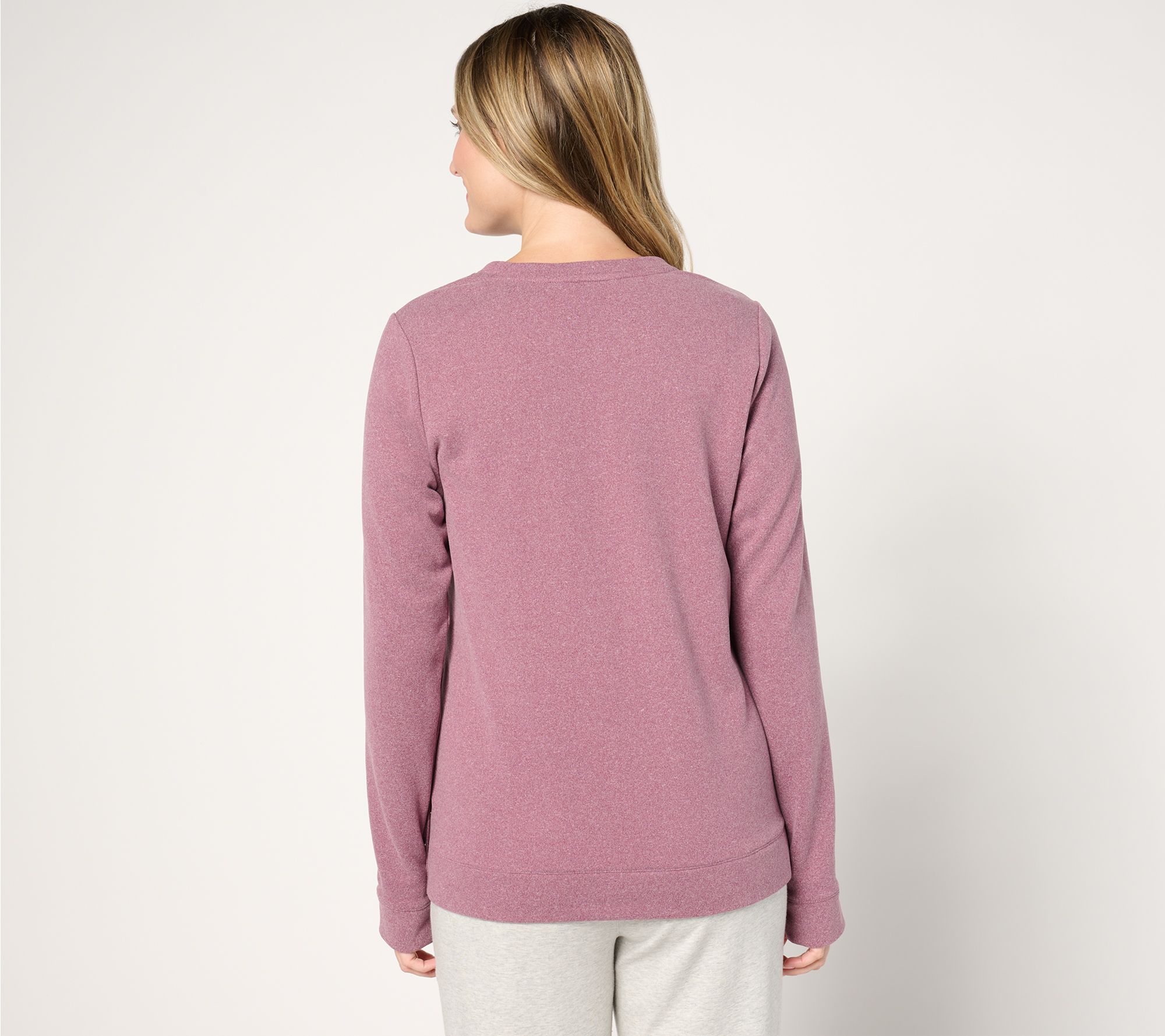 "As Is" Denim & Co. Active Fleece Crew Neck Pullover with Button