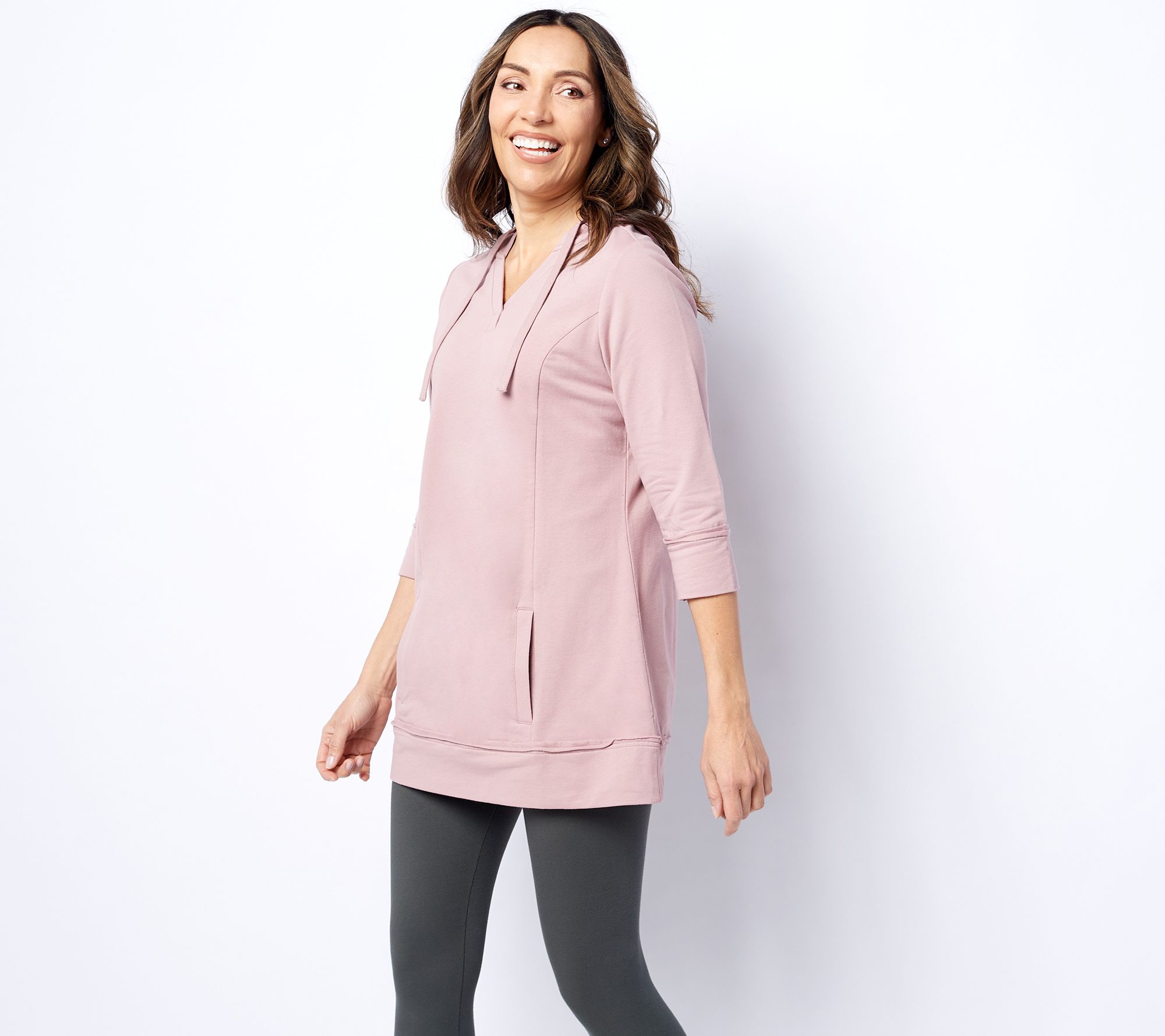 "As Is" Denim & Co. Active French Terry 3/4 Sleeve V-Neck Pullover