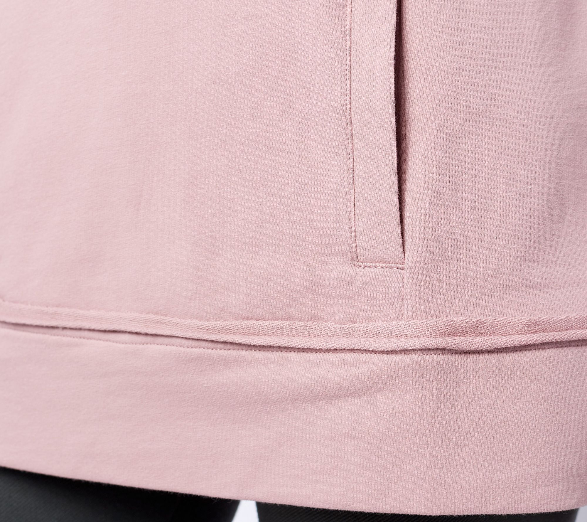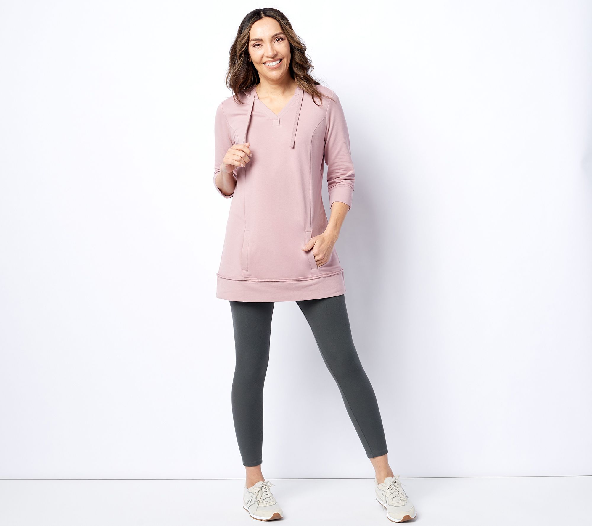 Whether you choose to get active in this French terry sweatshirt, or snuggle up on the couch with a hot mug of tea and a brand new book, you'll feel confident and cozy while you do. Plus, a convenient hood and on-seam pockets have you covered for windy weather and safe-keeping of your little items. From Denim & Co.® Fashions.