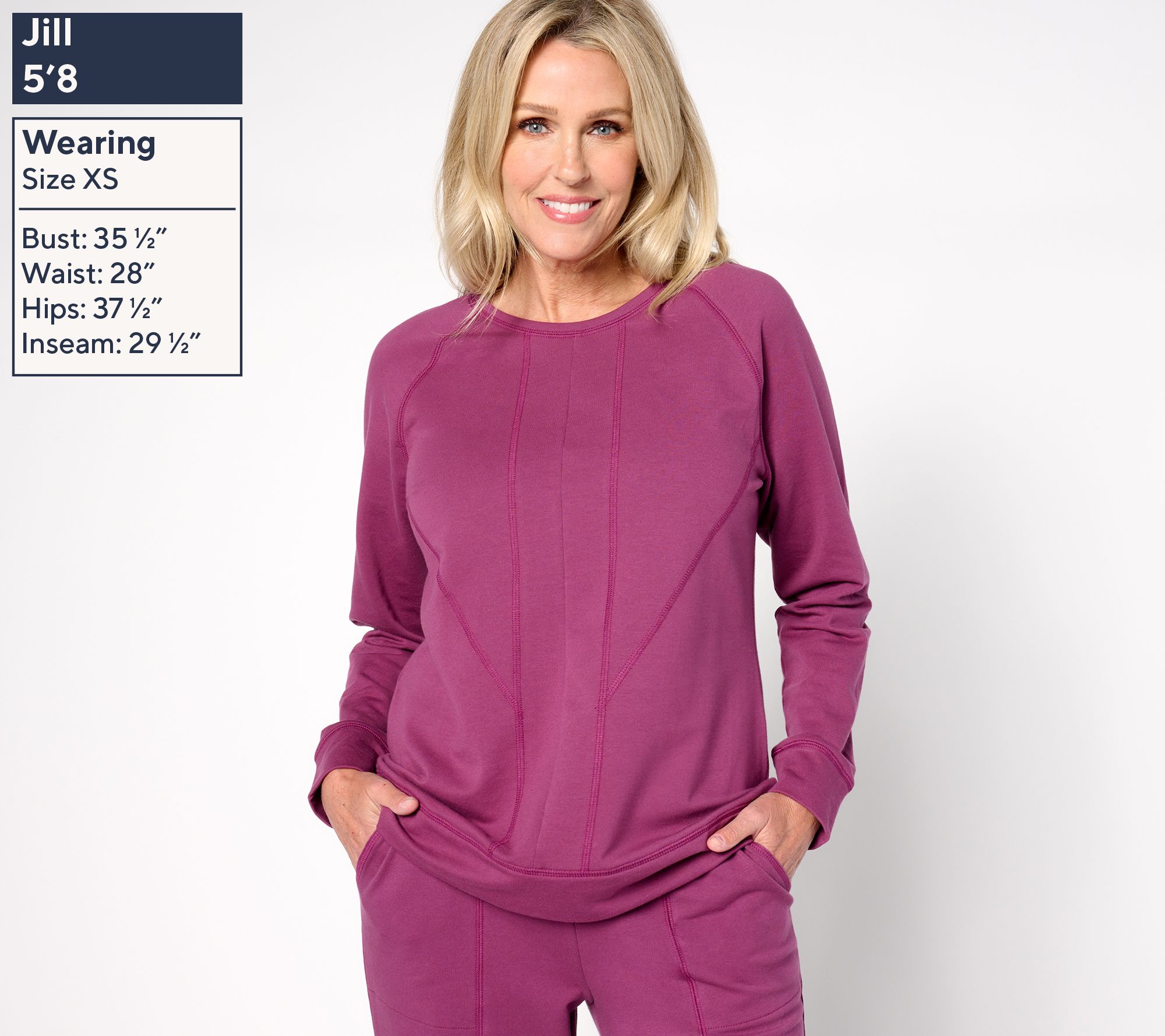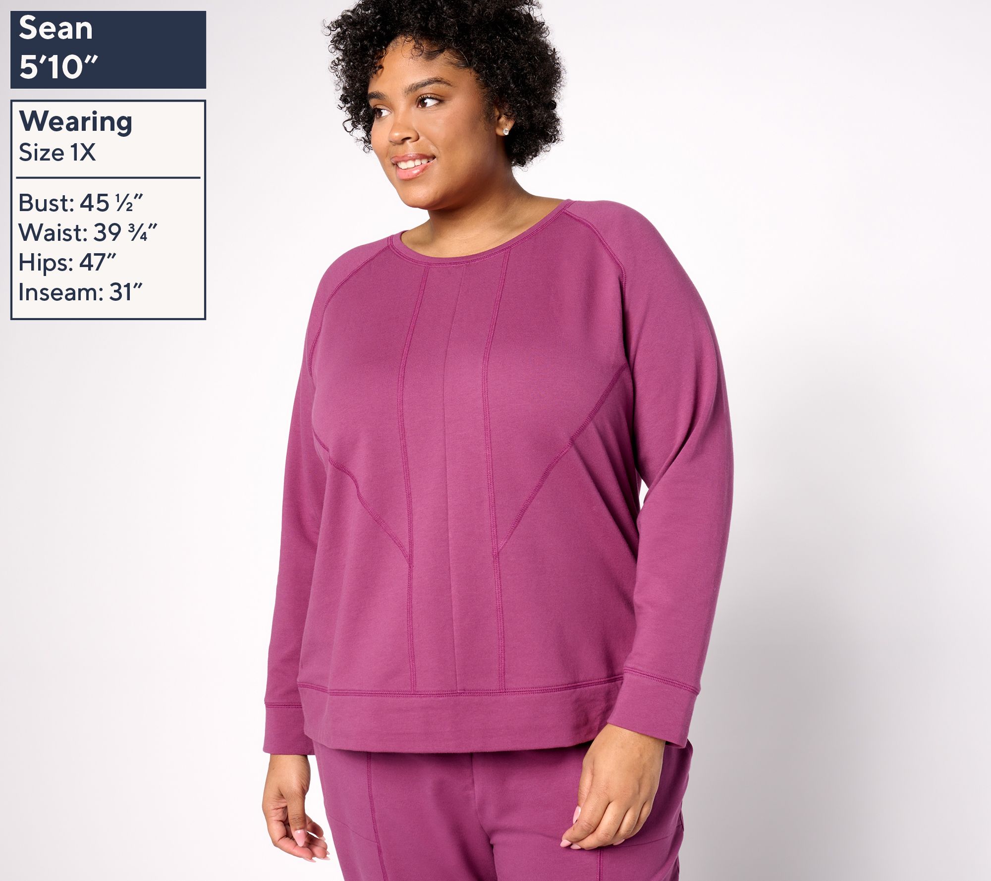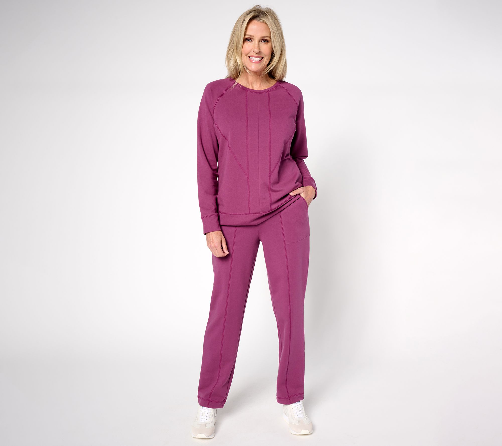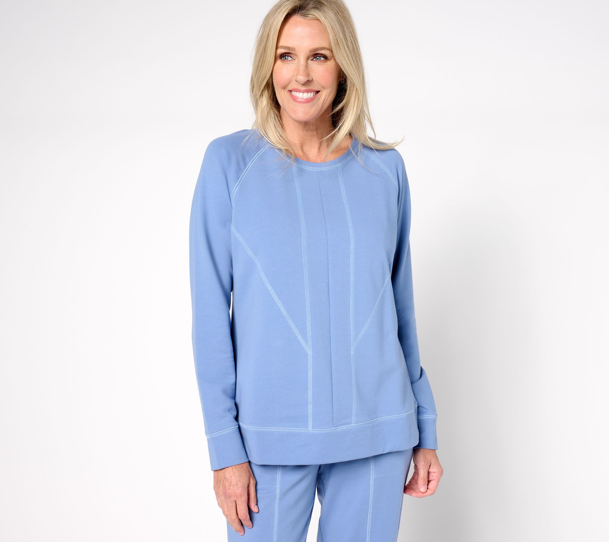 Refresh your casual wardrobe with this French terry pullover, perfect for everything from weekend relaxation to weekday errands. Geometric seaming details add a touch of modern flair, while the bottom band and sleeve cuffs offer a polished finish. From Denim & Co..