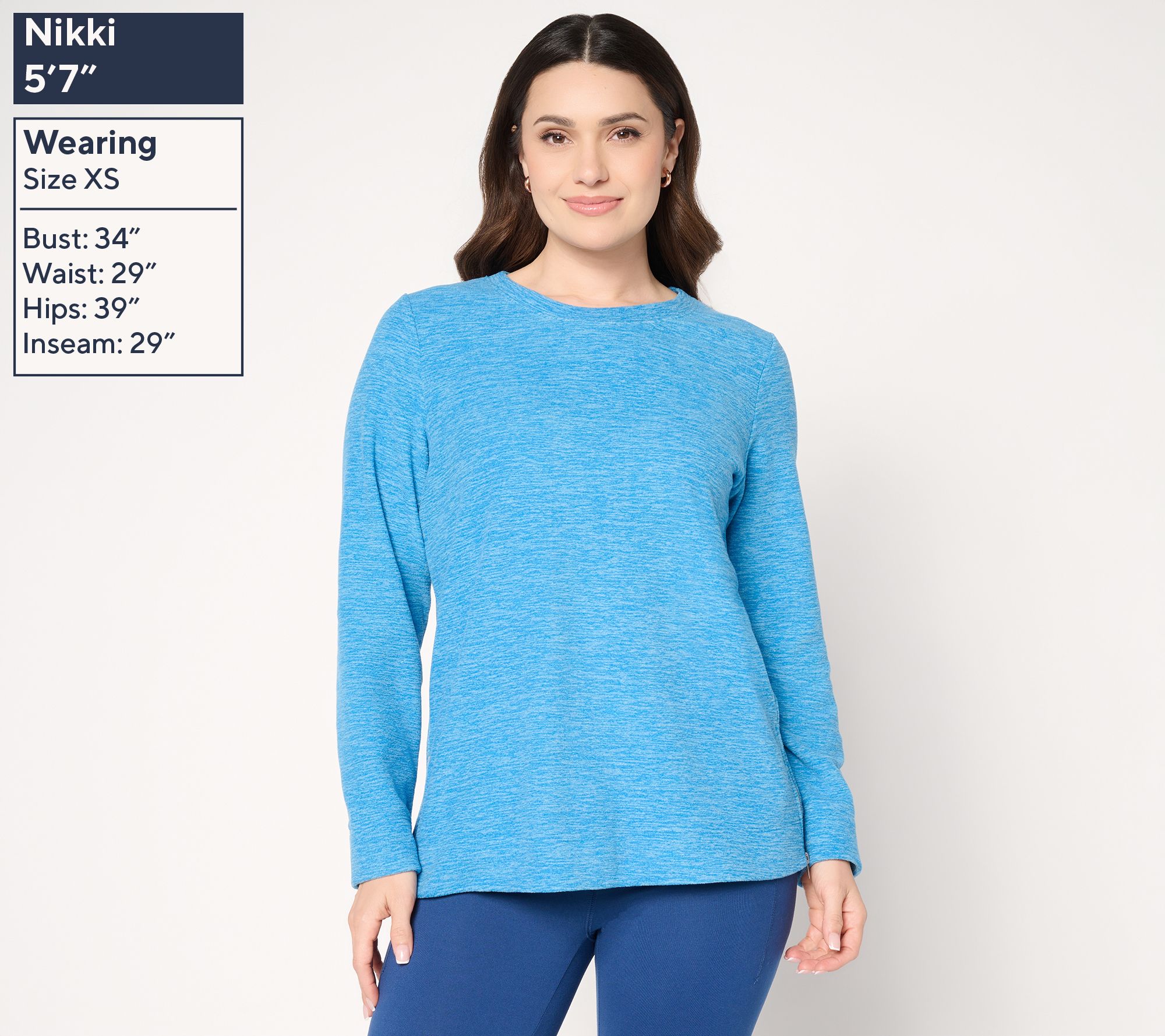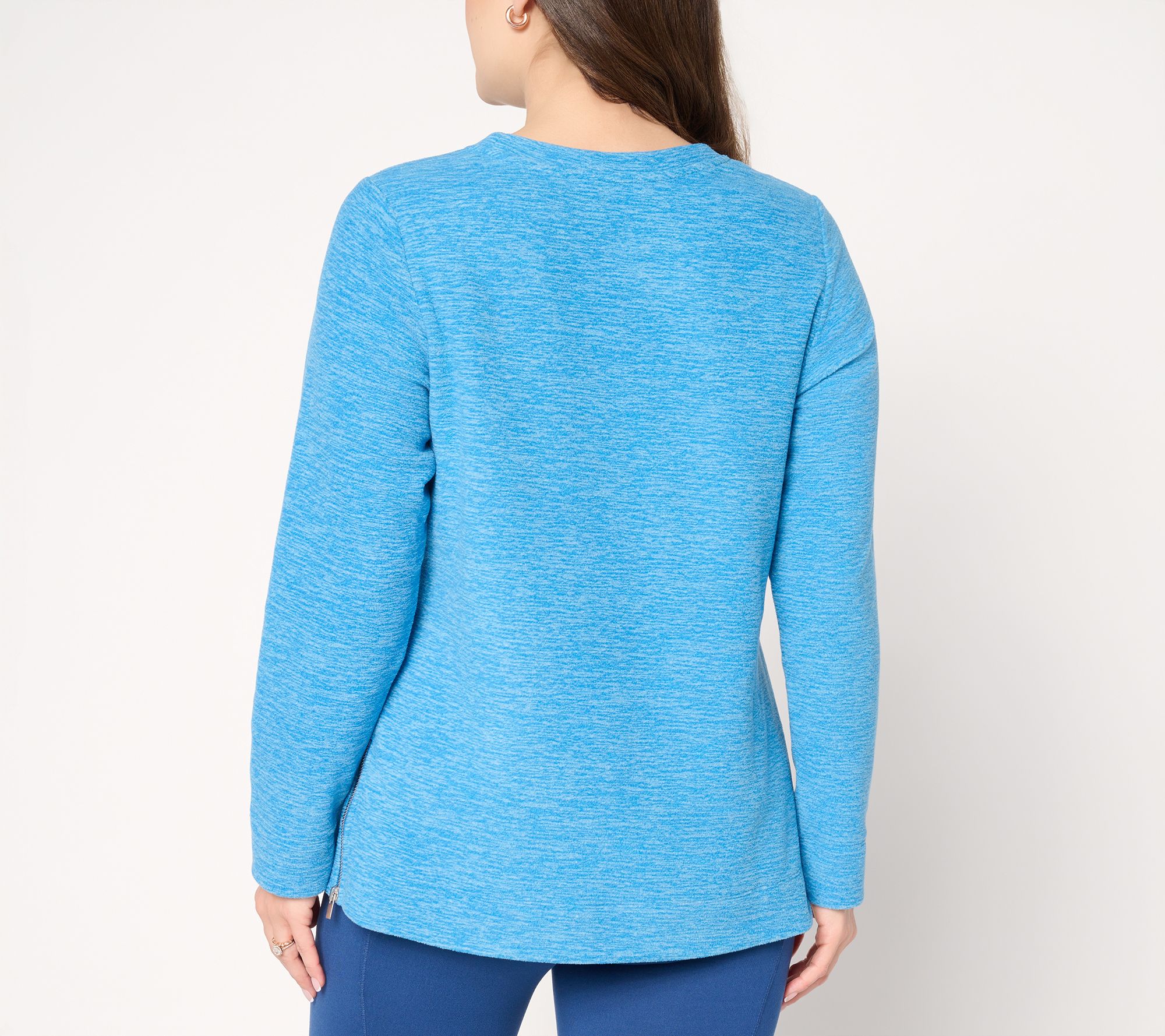 "As Is" Denim & Co. Active Heathered Fleece Top with Side Zippers