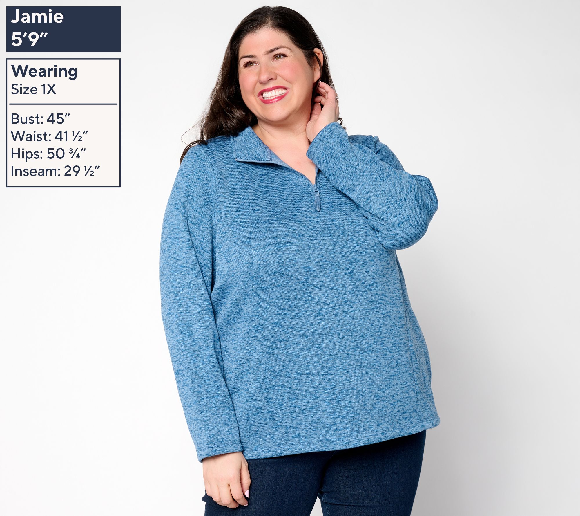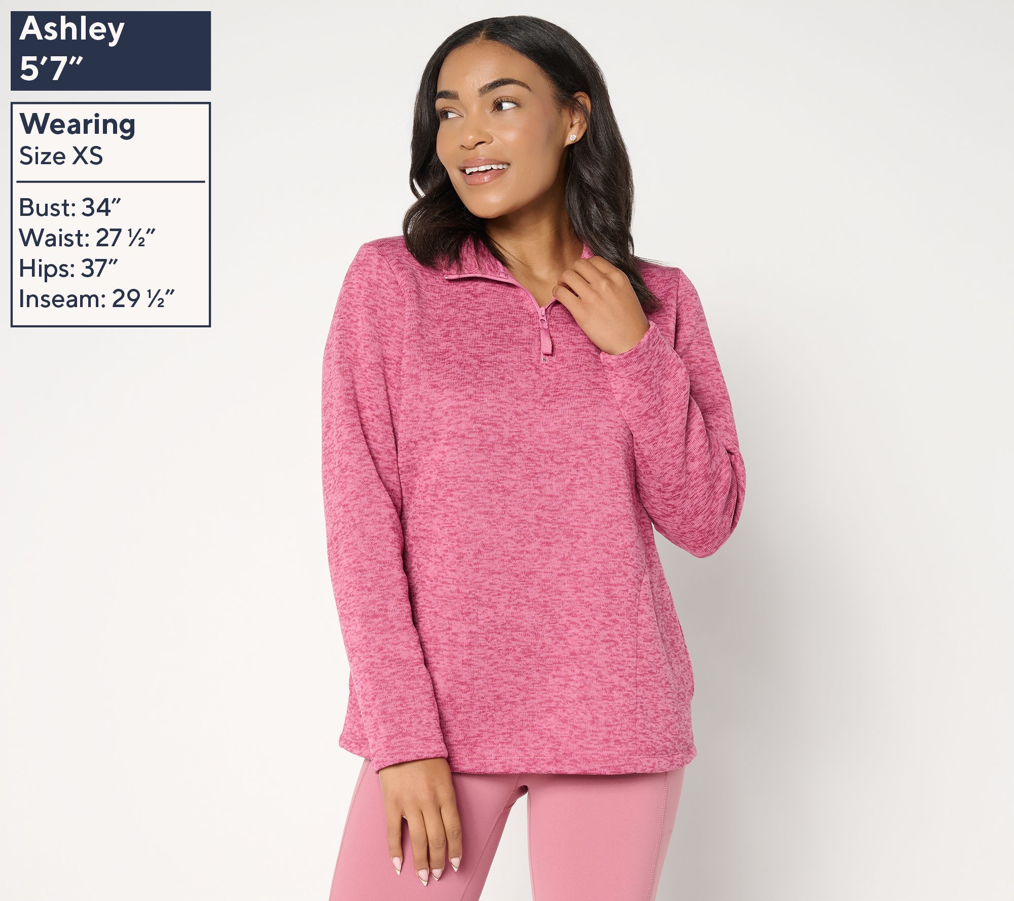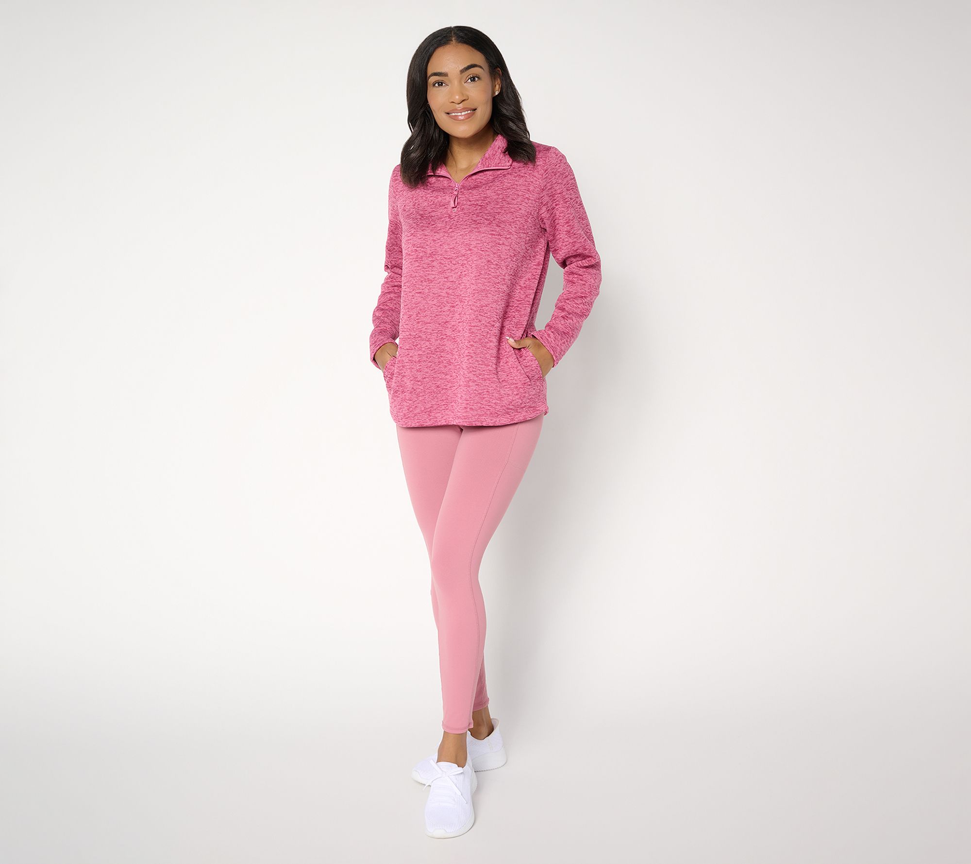 "As Is" Denim & Co. Active Heathered Sweater Fleece Top w/ Half Zip
