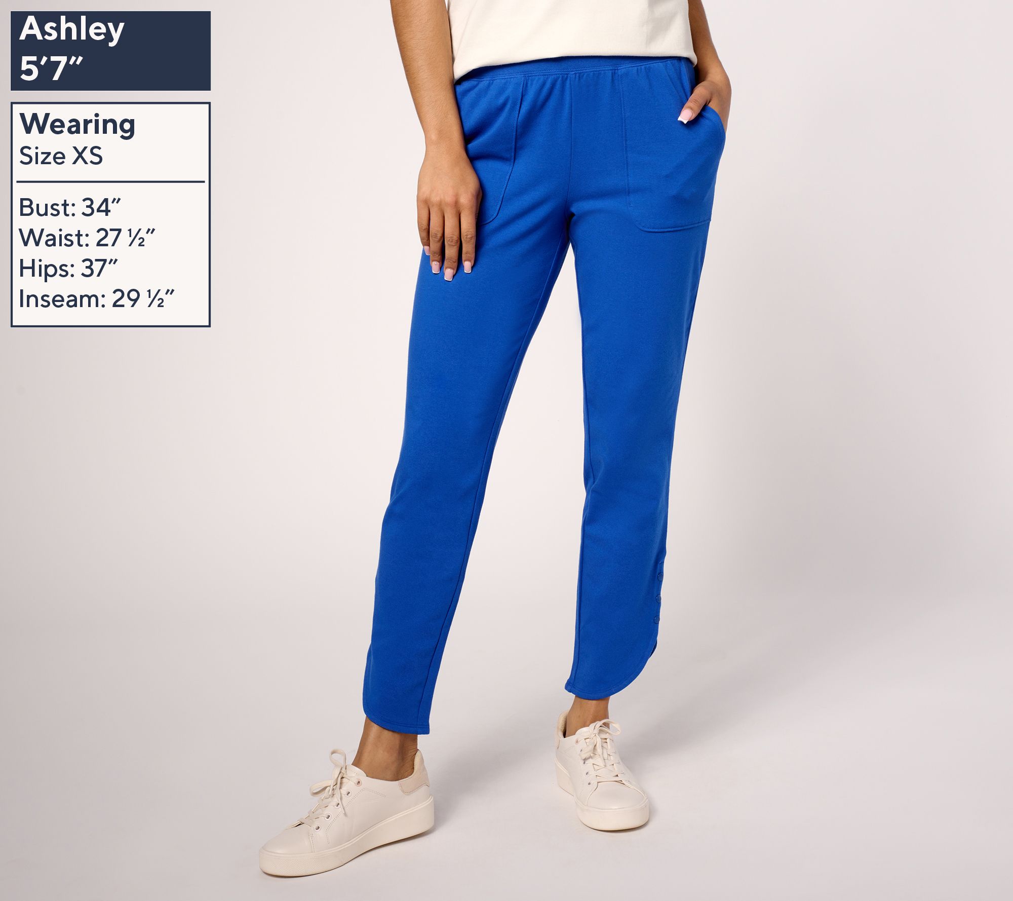 • Features: pull-on style, flat elastic waistband, pockets, ankle length
