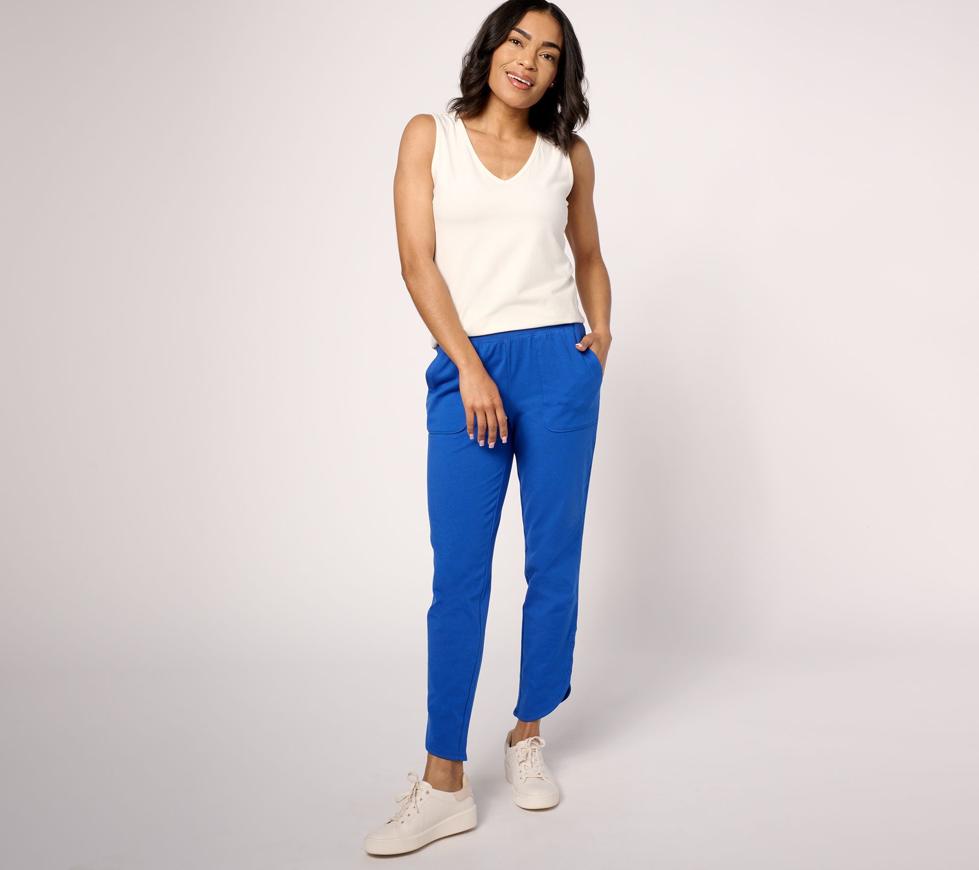 Oh, snap! Put your active days on alert: Duo Stretch ankle pants from Denim & Co.® are upgrading your athleisure look with a balanced mix of comfort and chic style (functional snaps at the leg hem deserve all the credit!). From Denim & Co.® Fashions.