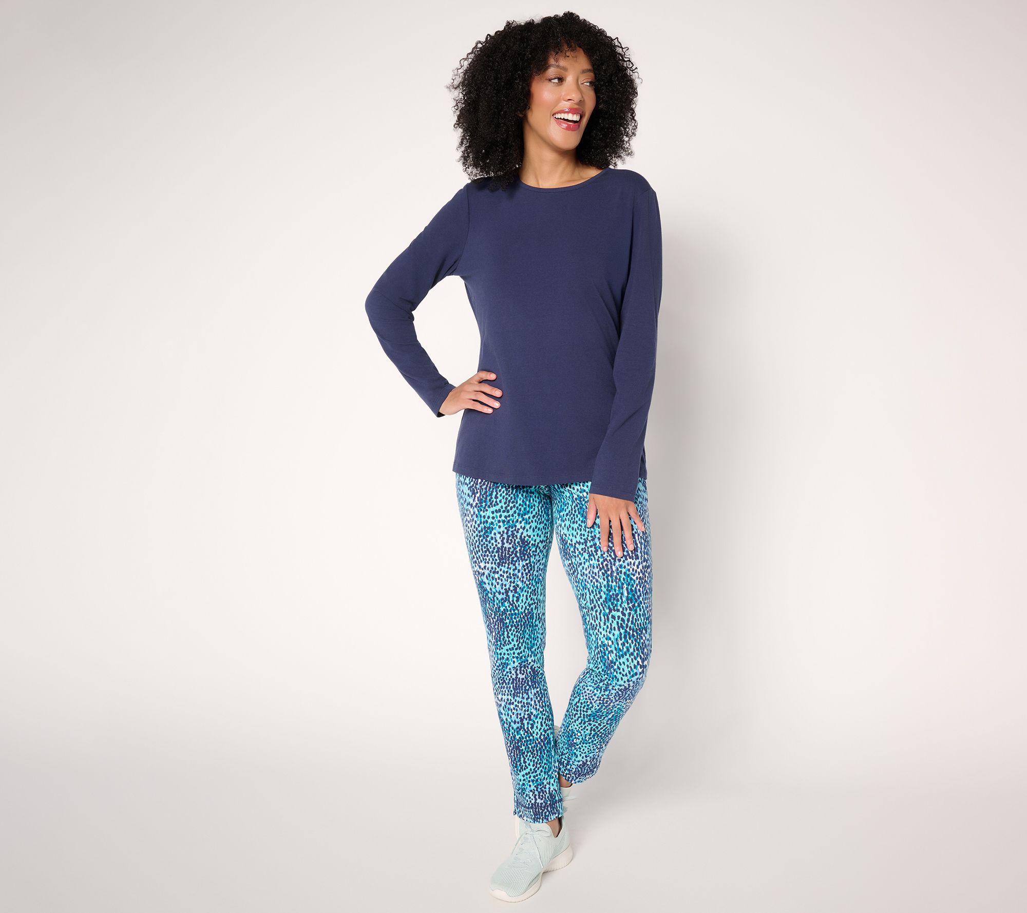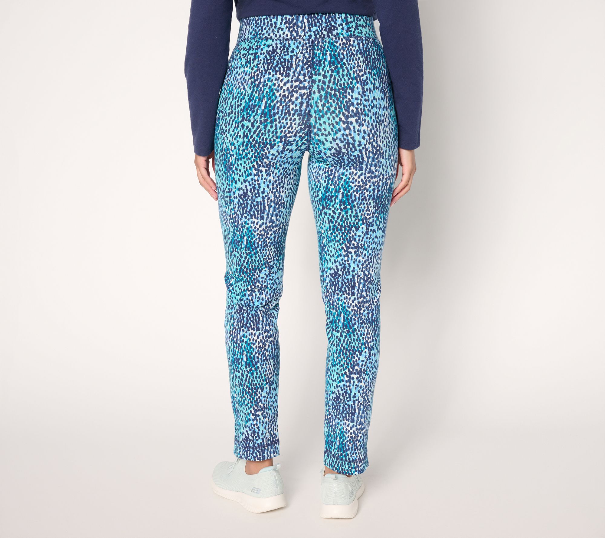Need a knit revival? From mornings at the office to afternoons spent exploring your city, these slim-leg pants bring the energy with a lively print and just the right amount of tailored structure. The full-length silhouette and slash pockets add practical versatility, while Duo Stretch knit flexes for easy comfort wherever your day takes you. From Denim & Co.® Fashions.