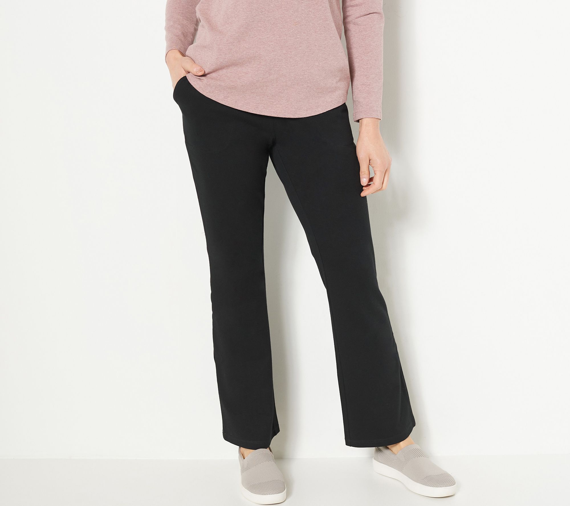 The just-right, slight bootcut shape graces the tops of your shoes with a subtle perfection that doesn't go unnoticed. Match this with the comfort of the elastic waistband and you may have just found your new go-to pants. From Denim & Co.® Fashions.