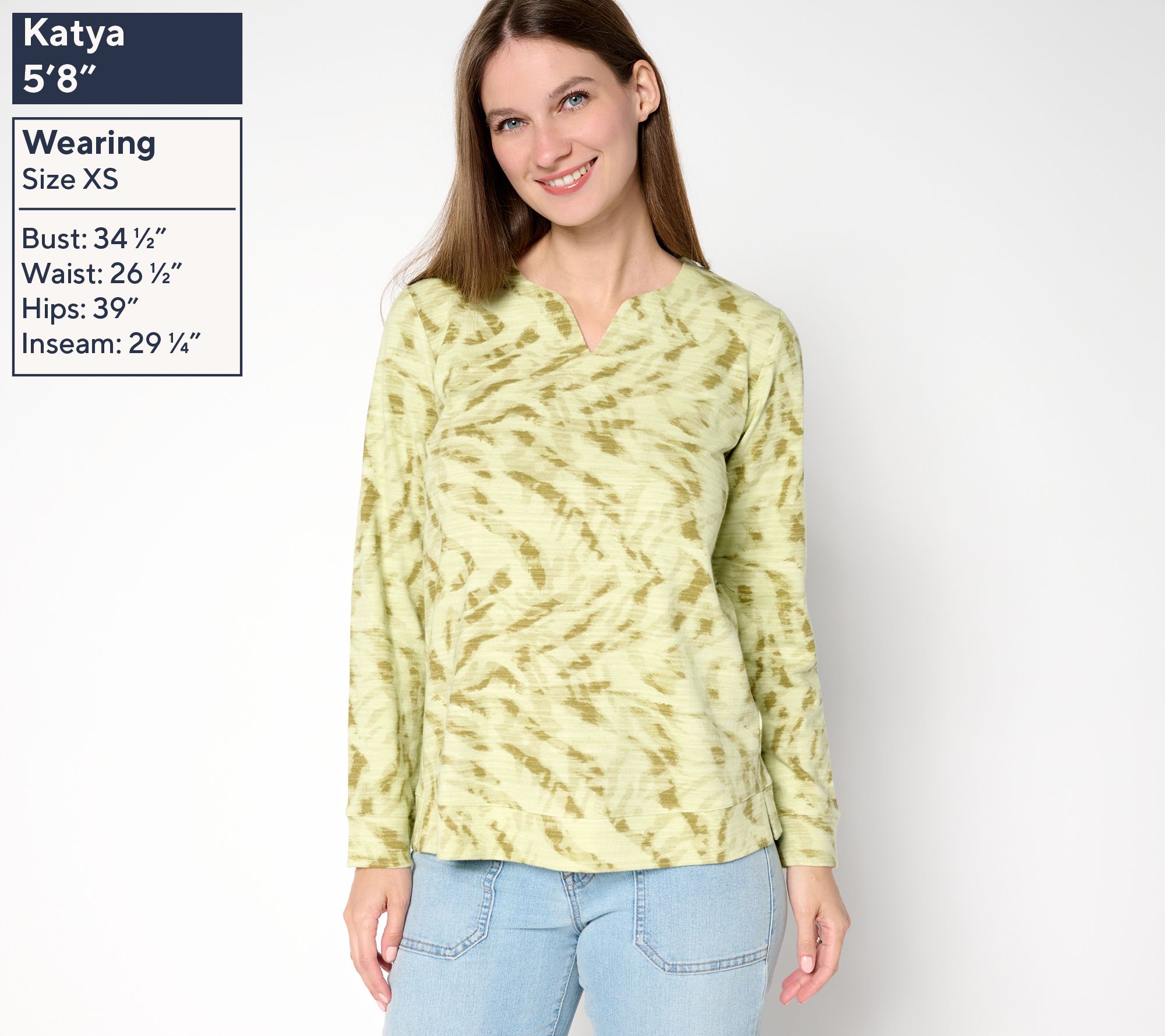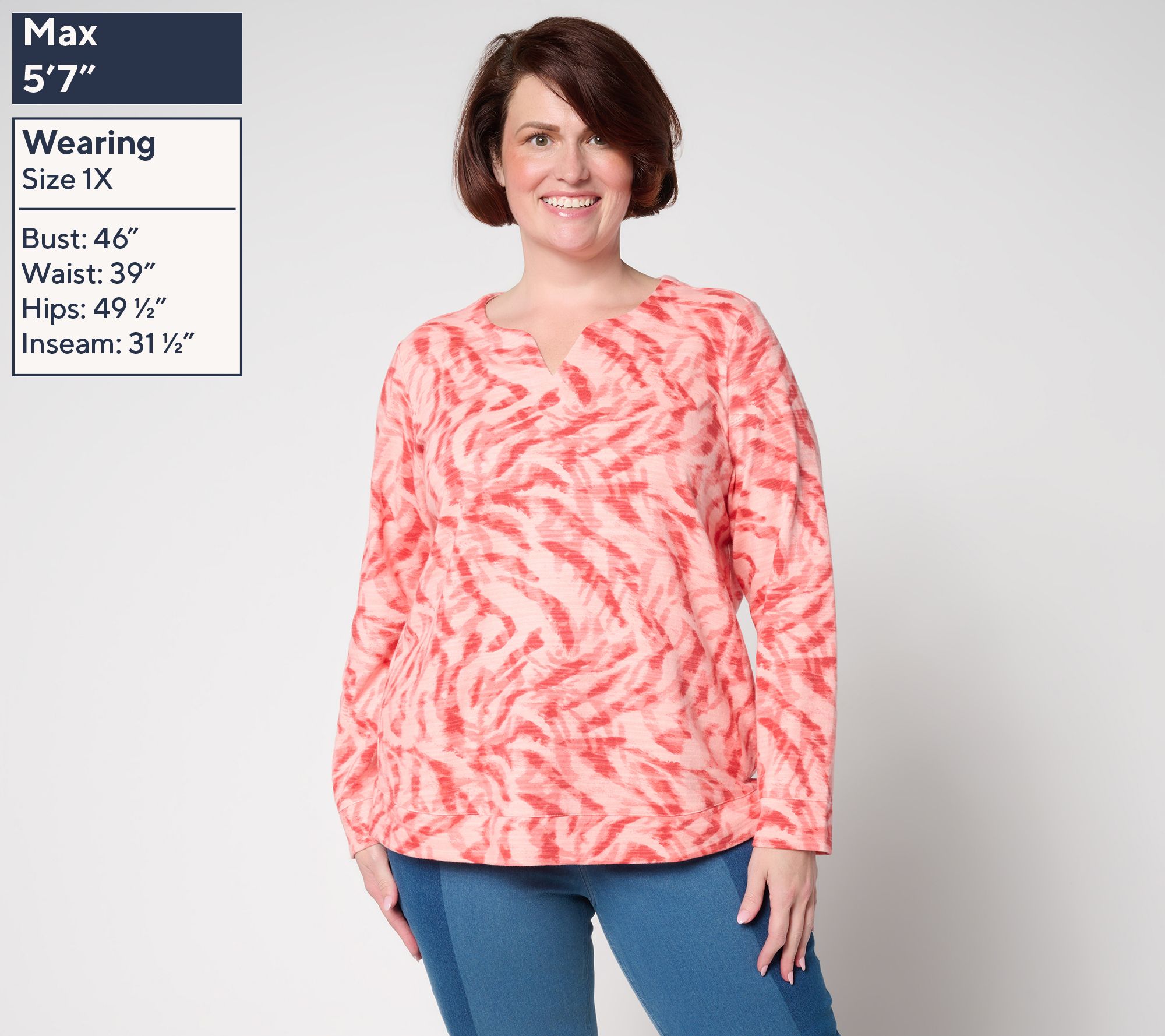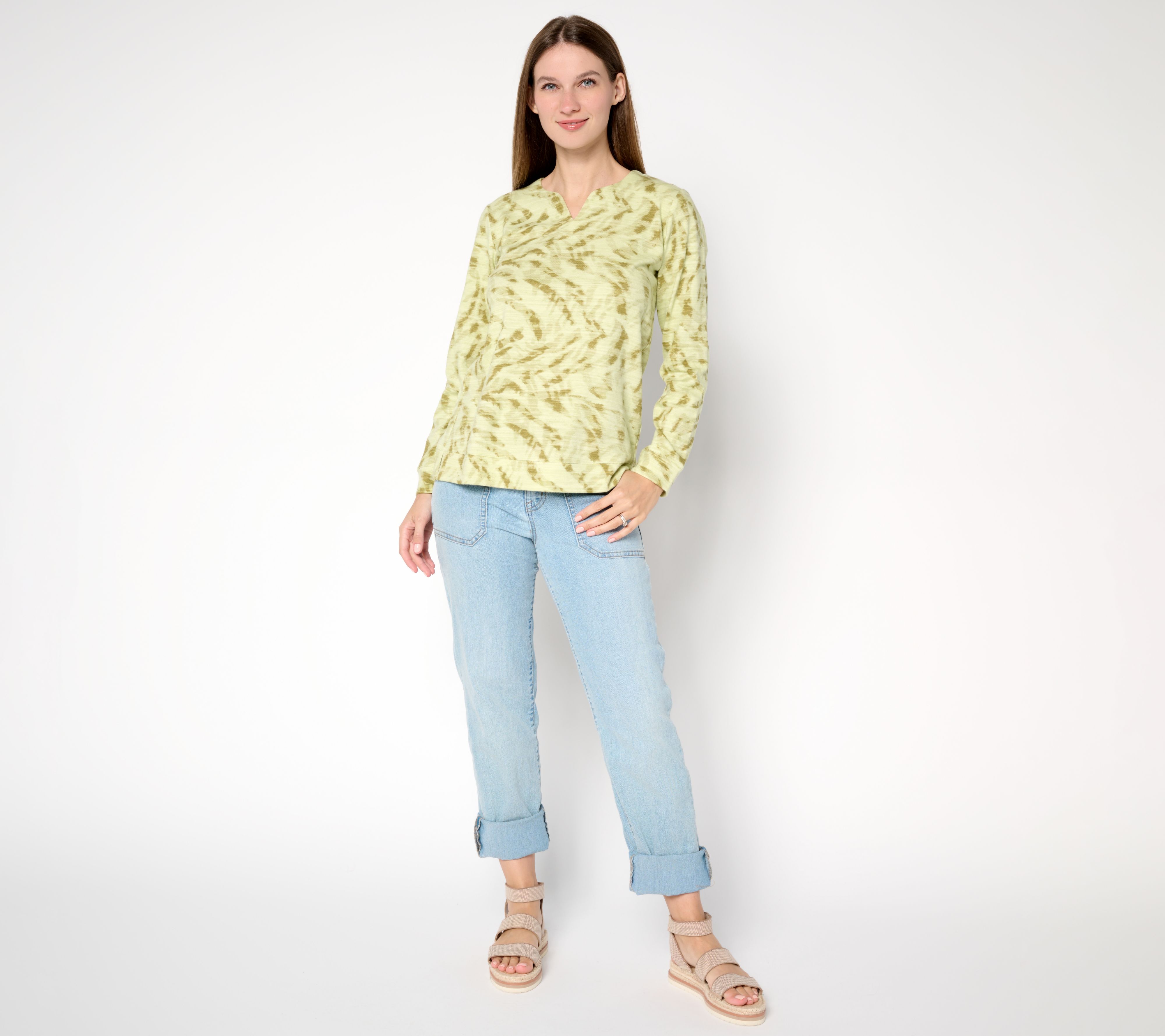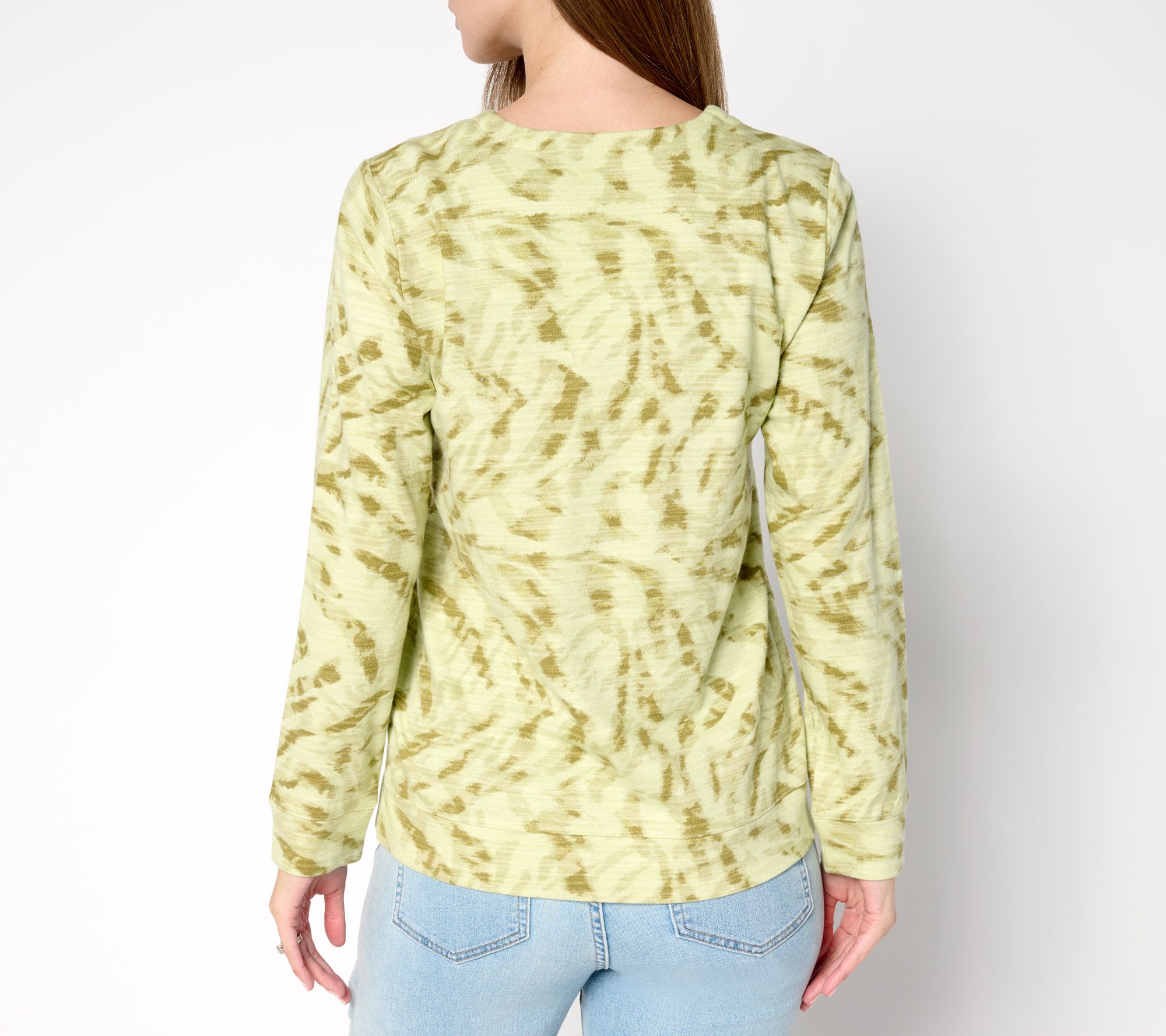 "As Is" Denim & Co. Active Printed Texture Cotton Split Neck Pullover